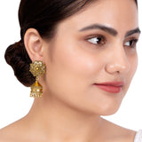 Add luster to your ethnic look by donning these trendy earrings. This brass pair has given an oxidized gold finish that gives out an exquisite sense of style. Accessorize your simple kurta with a pair of these earrings.Weight (Gms): 10.08Size...
