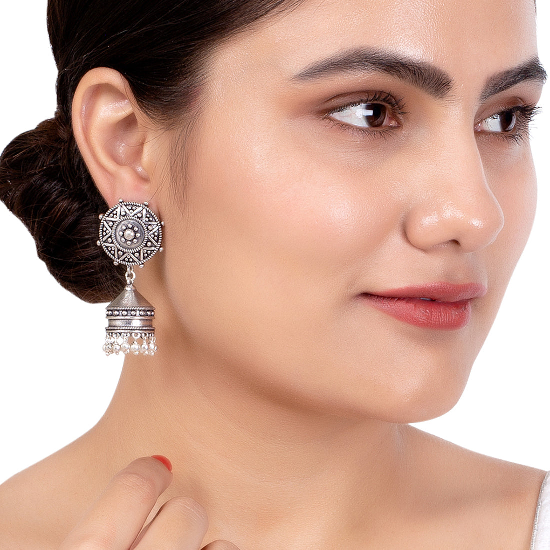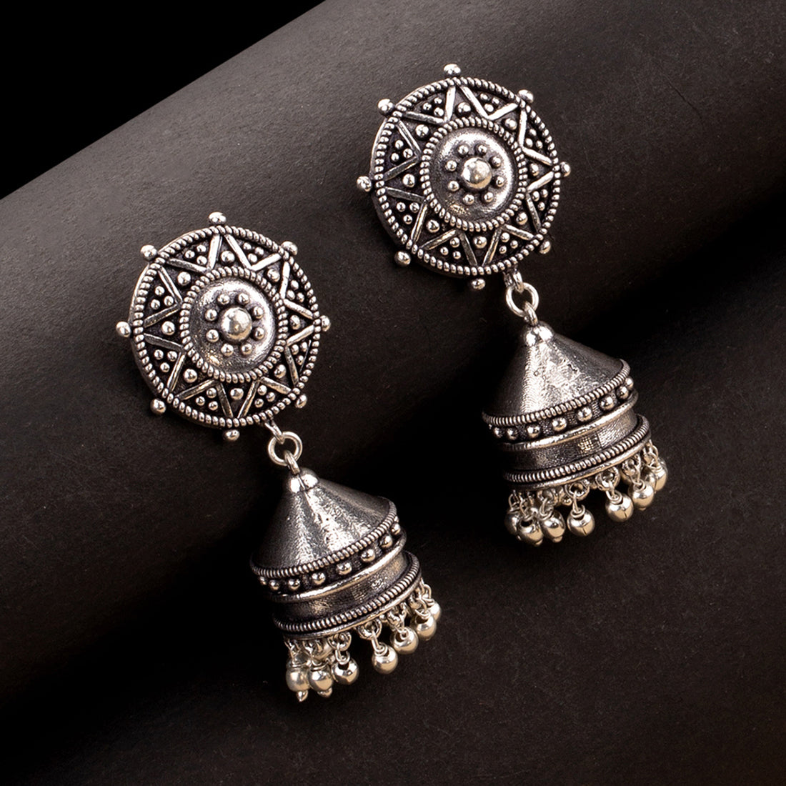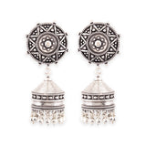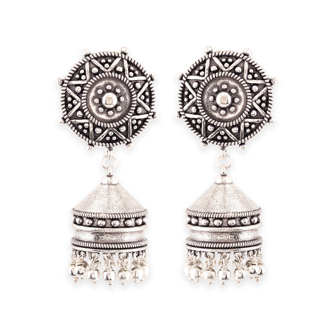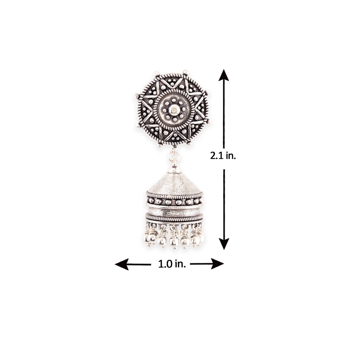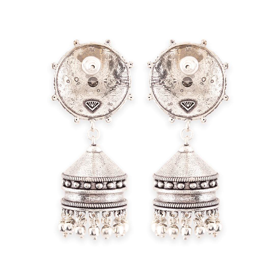 Rava Ball Tomb Motif Silver Oxidized Plated Earrings