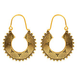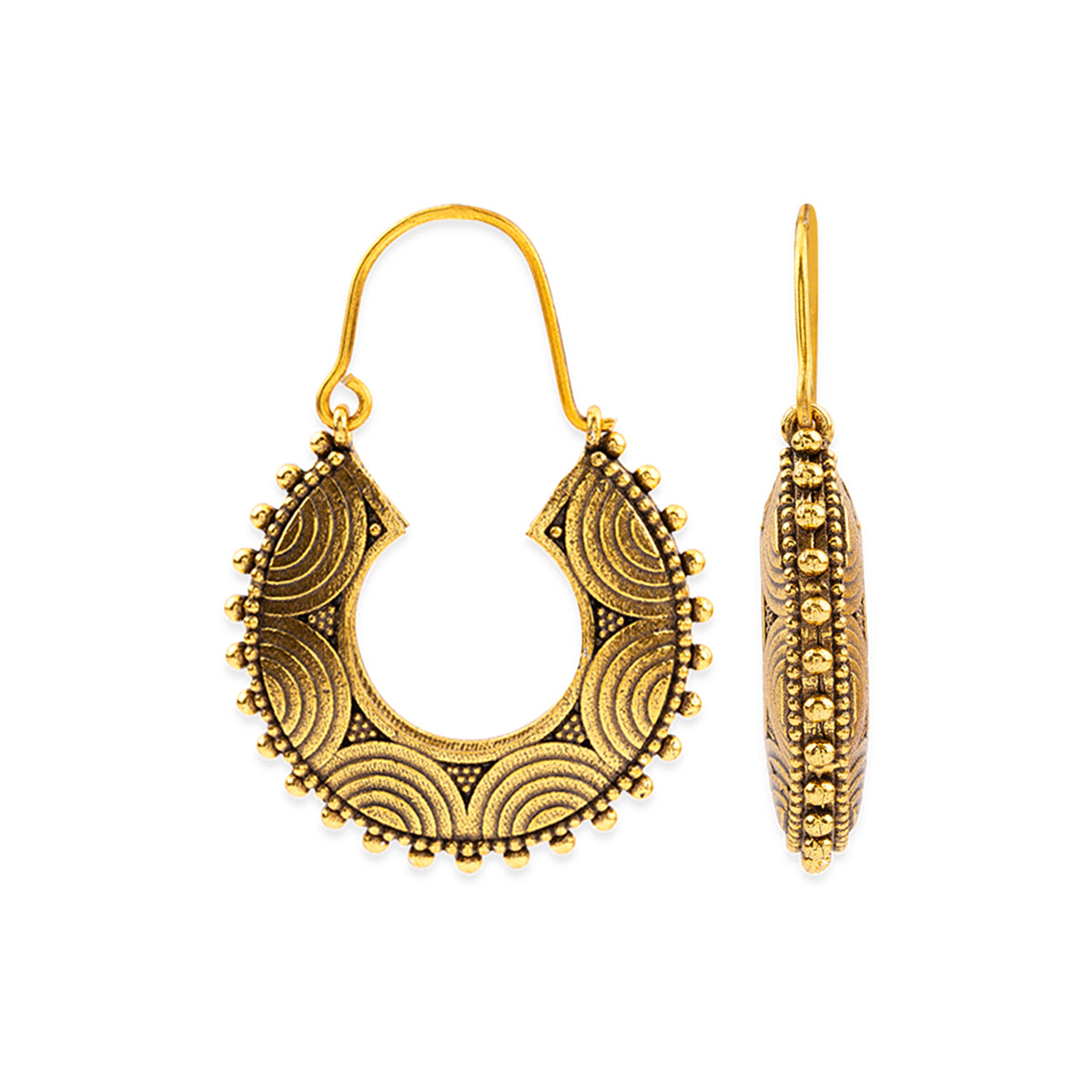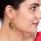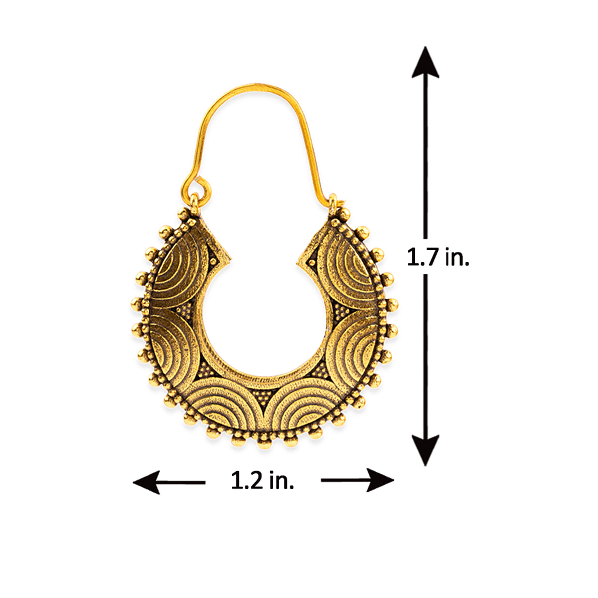 Give a clean and rustic appeal to your overall look with these Rava Ball hoop style earrings. This brass pair features an intricate design with shiny plating of oxidized gold. Accessorize them with suits and lehengas.