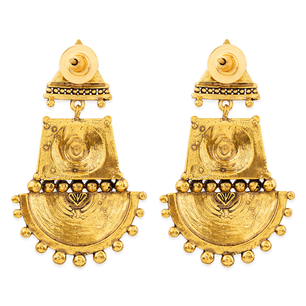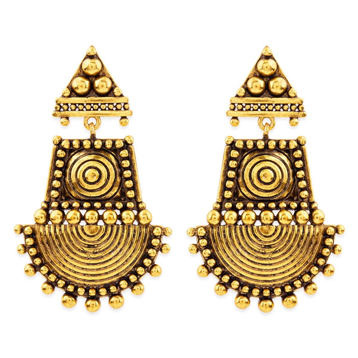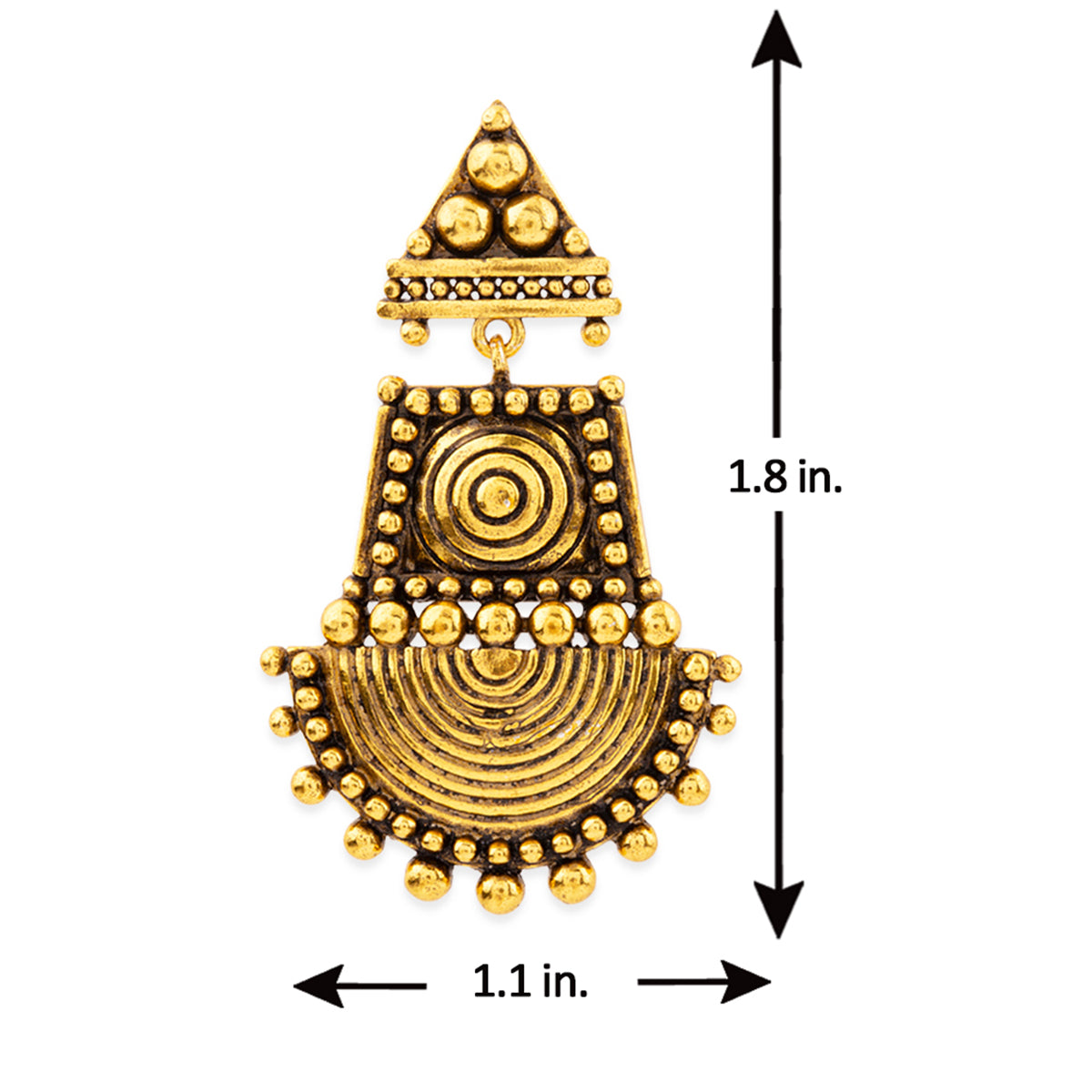 These Rava Ball oxidized gold earrings will make your look stylish in this wedding season. Crafted with brass with intricate design on the surface. Wear this pair with any Indian wear or Indo western dress.