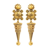 Complete your traditional look with these stylish Rava Ball Earrings for an engagement party. This pair has been crafted with brass and given an oxidized gold finish. Wear them with a silk saree or Anarkali kurta.