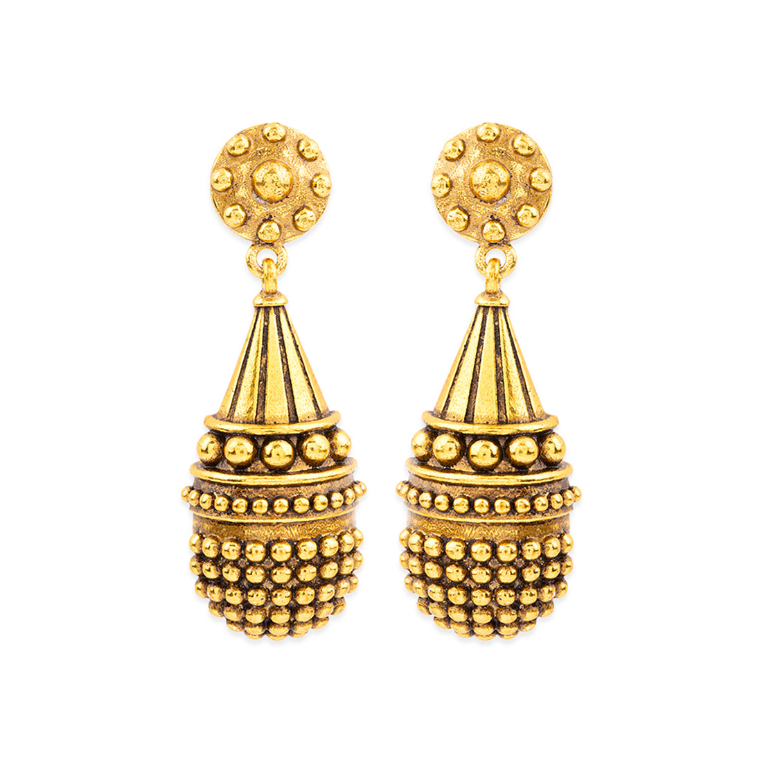 Rava Ball Tomb Motif Silver Oxidized Plated Earrings