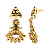 Add luster to your ethnic look by donning these trendy earrings. This brass pair has given an oxidized gold finish that gives out an exquisite sense of style. Accessorize your simple kurta with a pair of these earrings.Weight (Gms): 10.08Size...