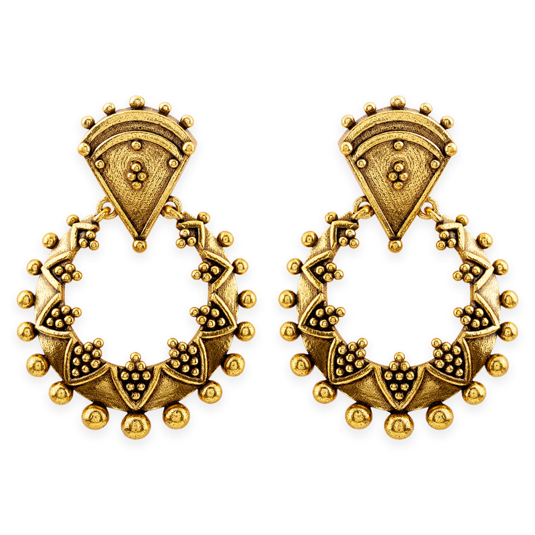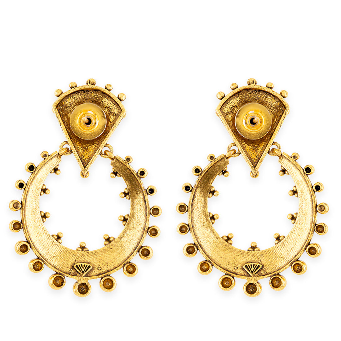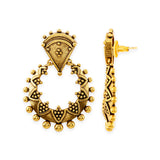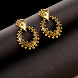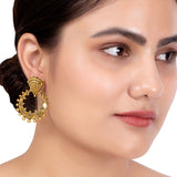 Add a pair of these brass earrings to complete your traditional look. This pair has an excellent oxidized gold finish and gives out an exquisite sense of style. Accessorize your simple kurta with these earrings and you will love how fresh this look will turn out.