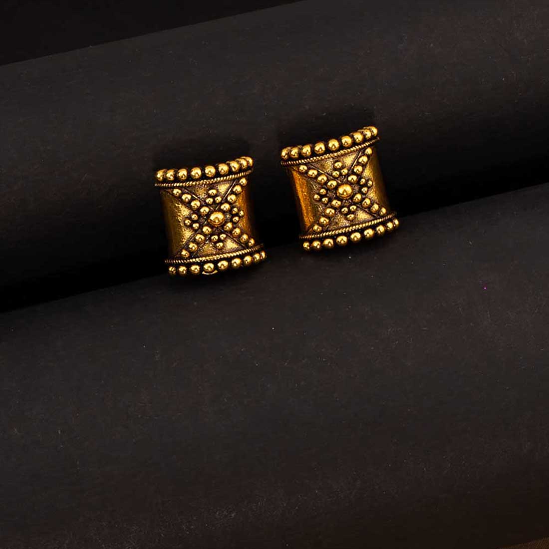 Rava Ball Oxidized Gold Stud Earrings