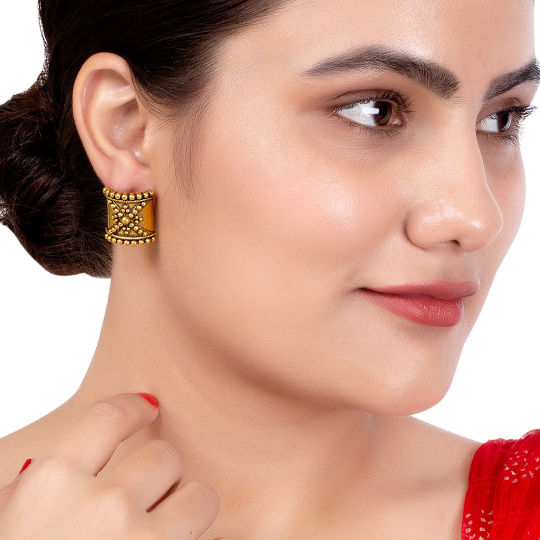 Add this trendy pair of earrings to your go-to jewelry collection. These earrings have been crafted from brass and oxidized gold plated. It goes perfectly with your formal or casual look.