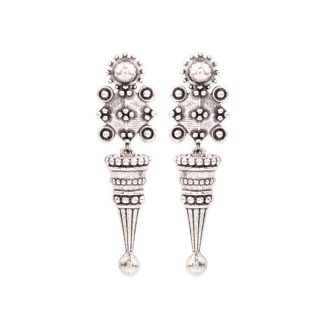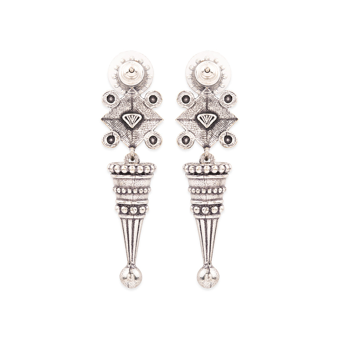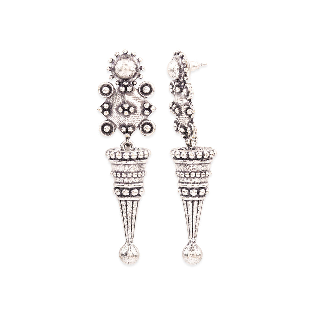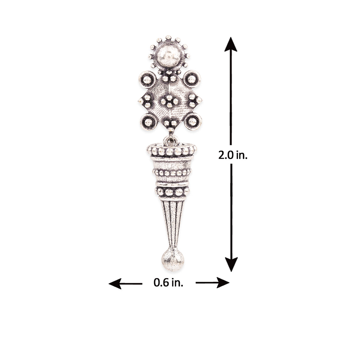 Rava Ball Tomb Motif Silver Oxidized Plated Earrings