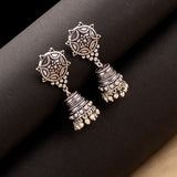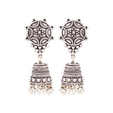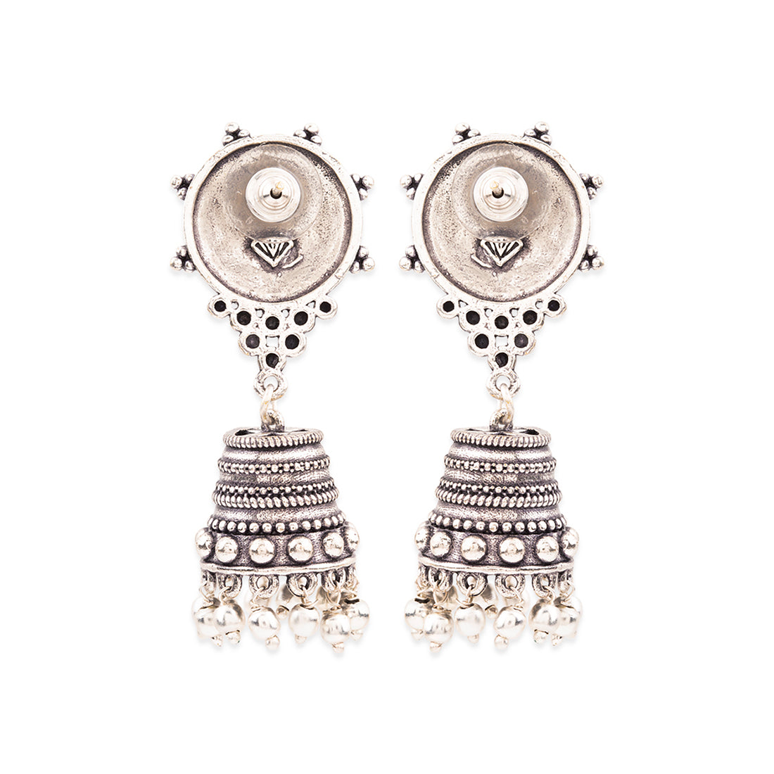 Rava Ball Tomb Motif Silver Oxidized Plated Earrings