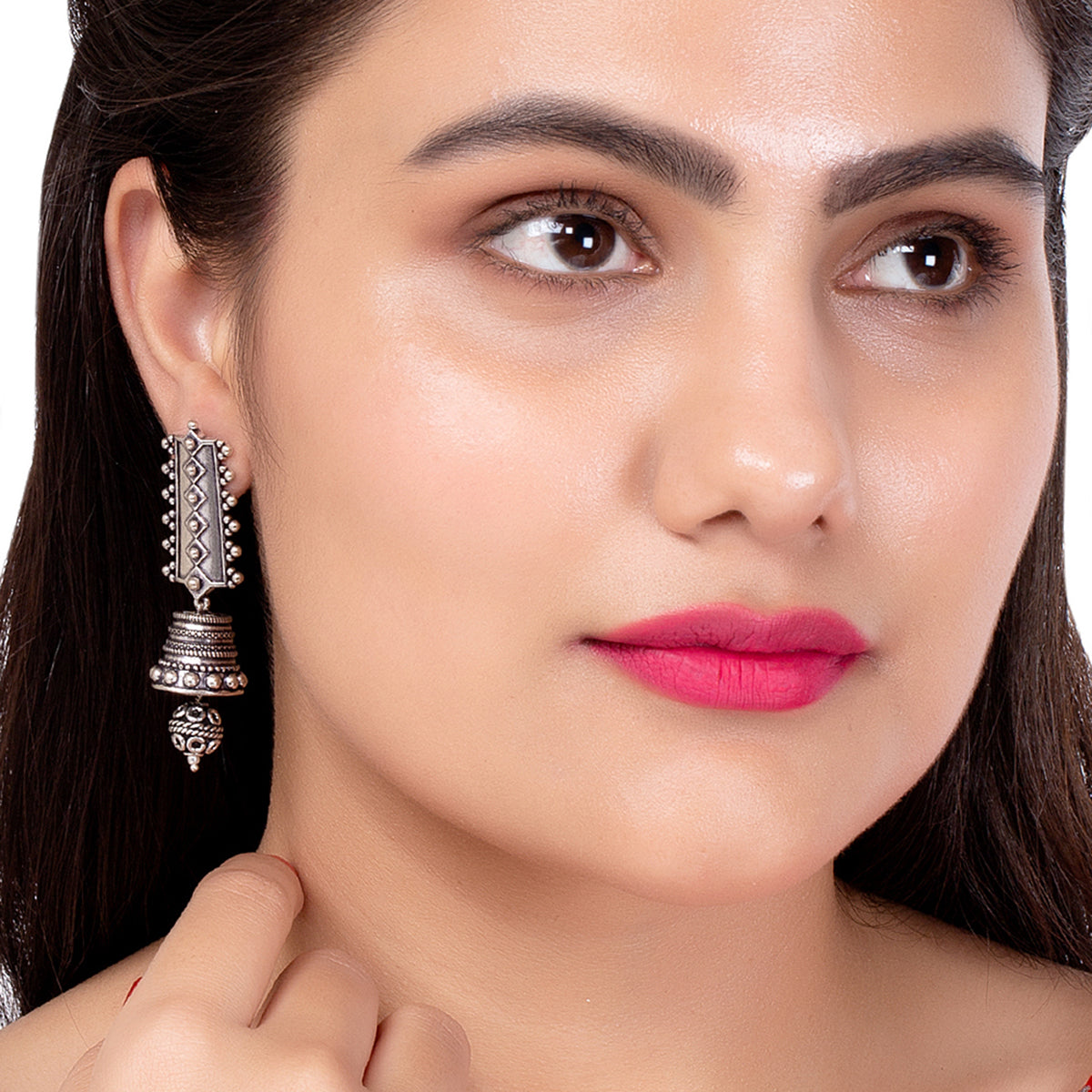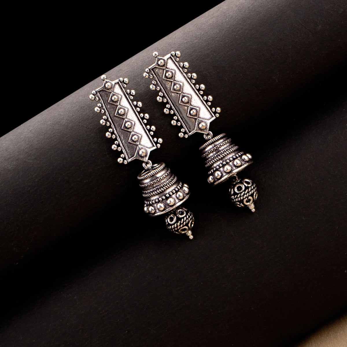 Rava Ball Silver Oxidized Jhumki Style Earrings
