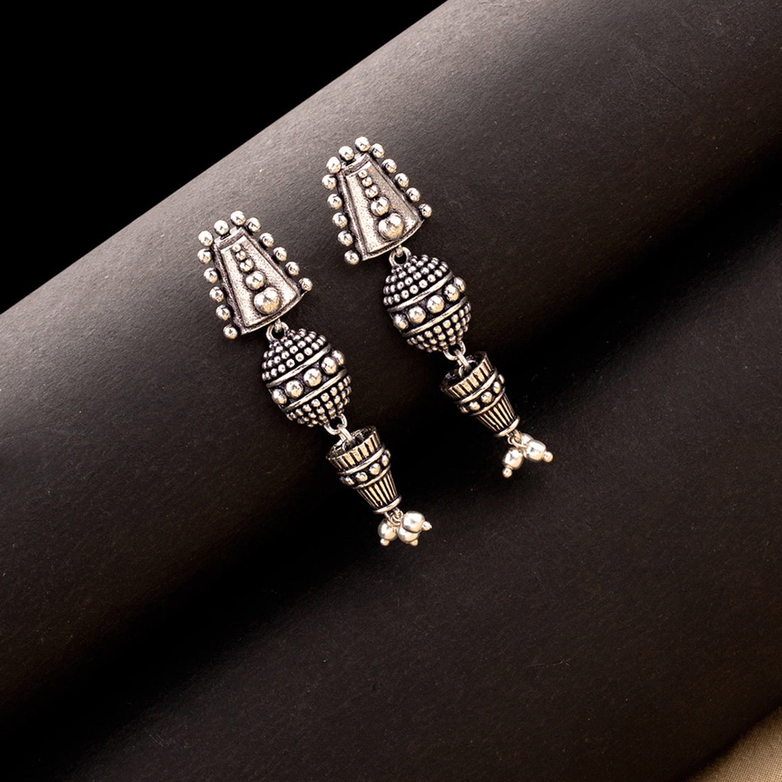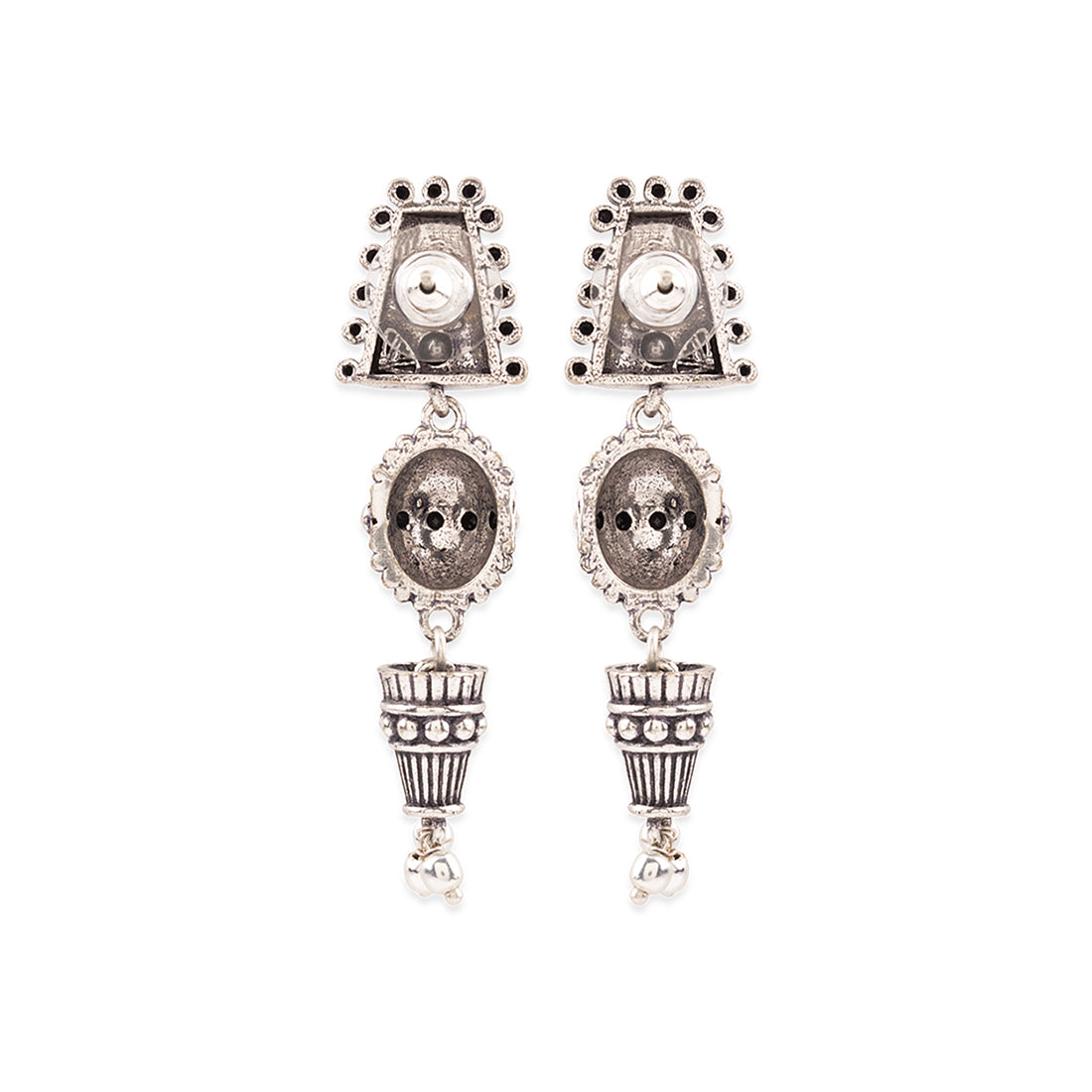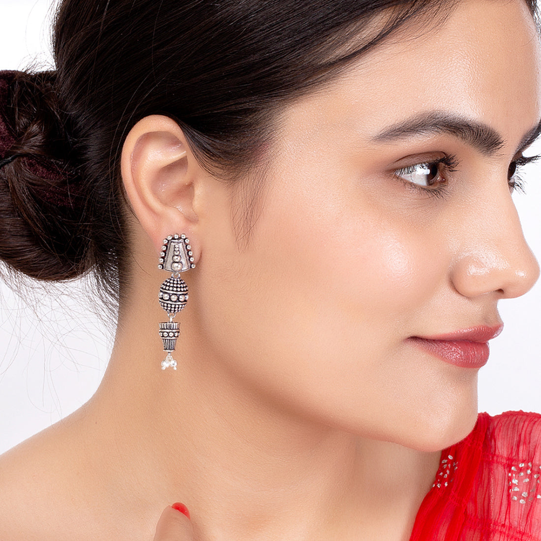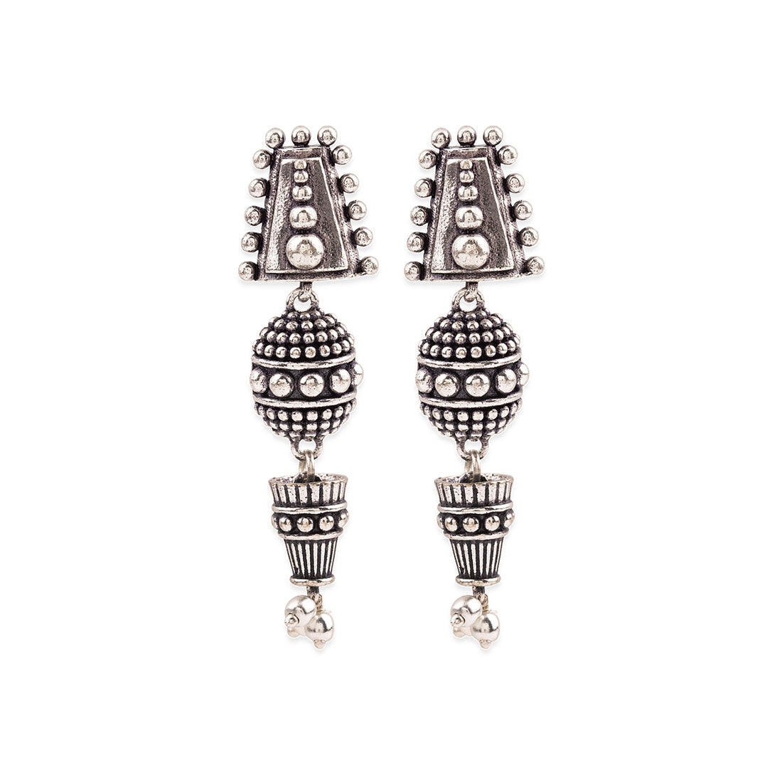Rava Ball Tomb Motif Silver Oxidized Plated Earrings