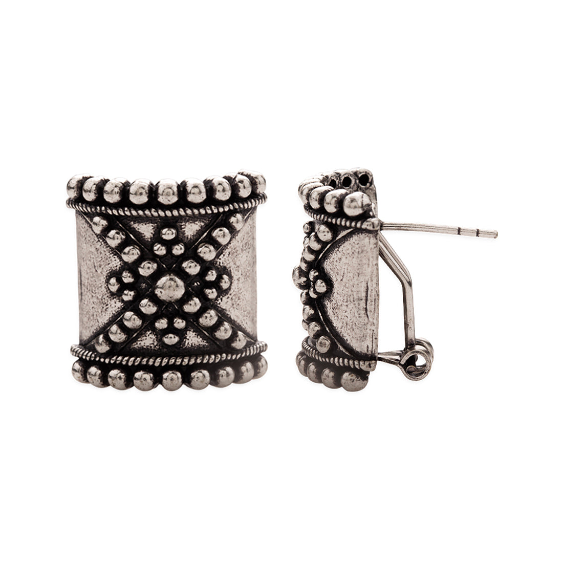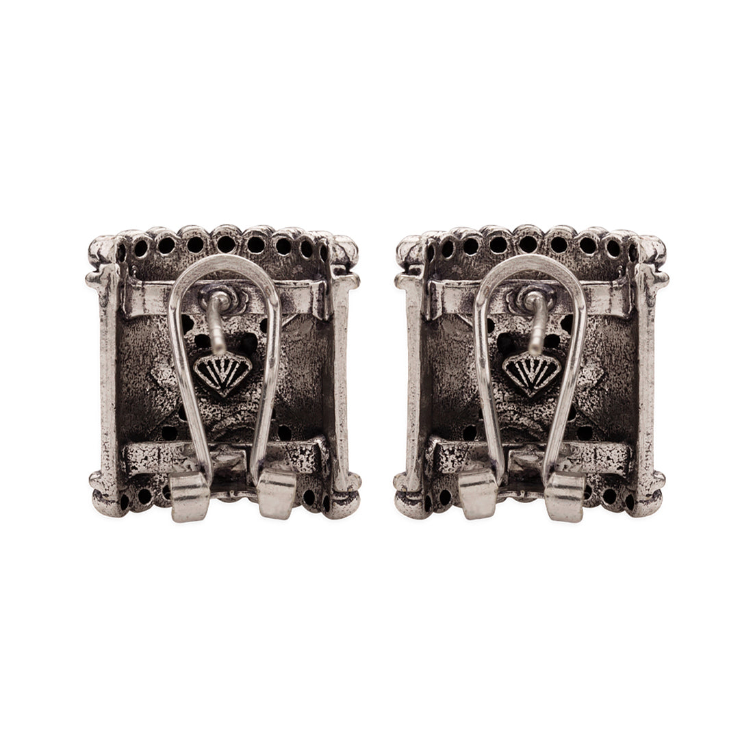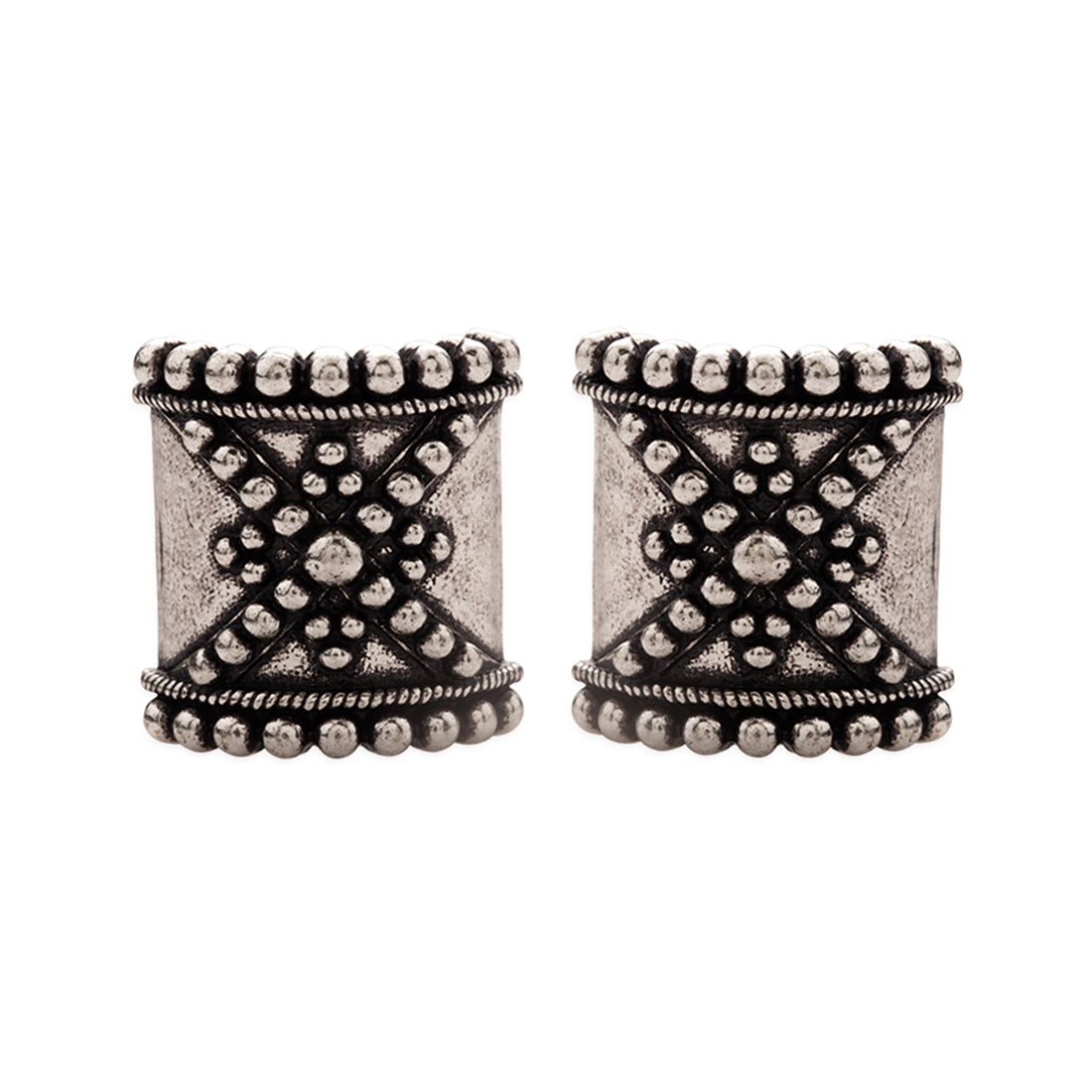 Rava Ball Tomb Motif Silver Oxidized Plated Earrings