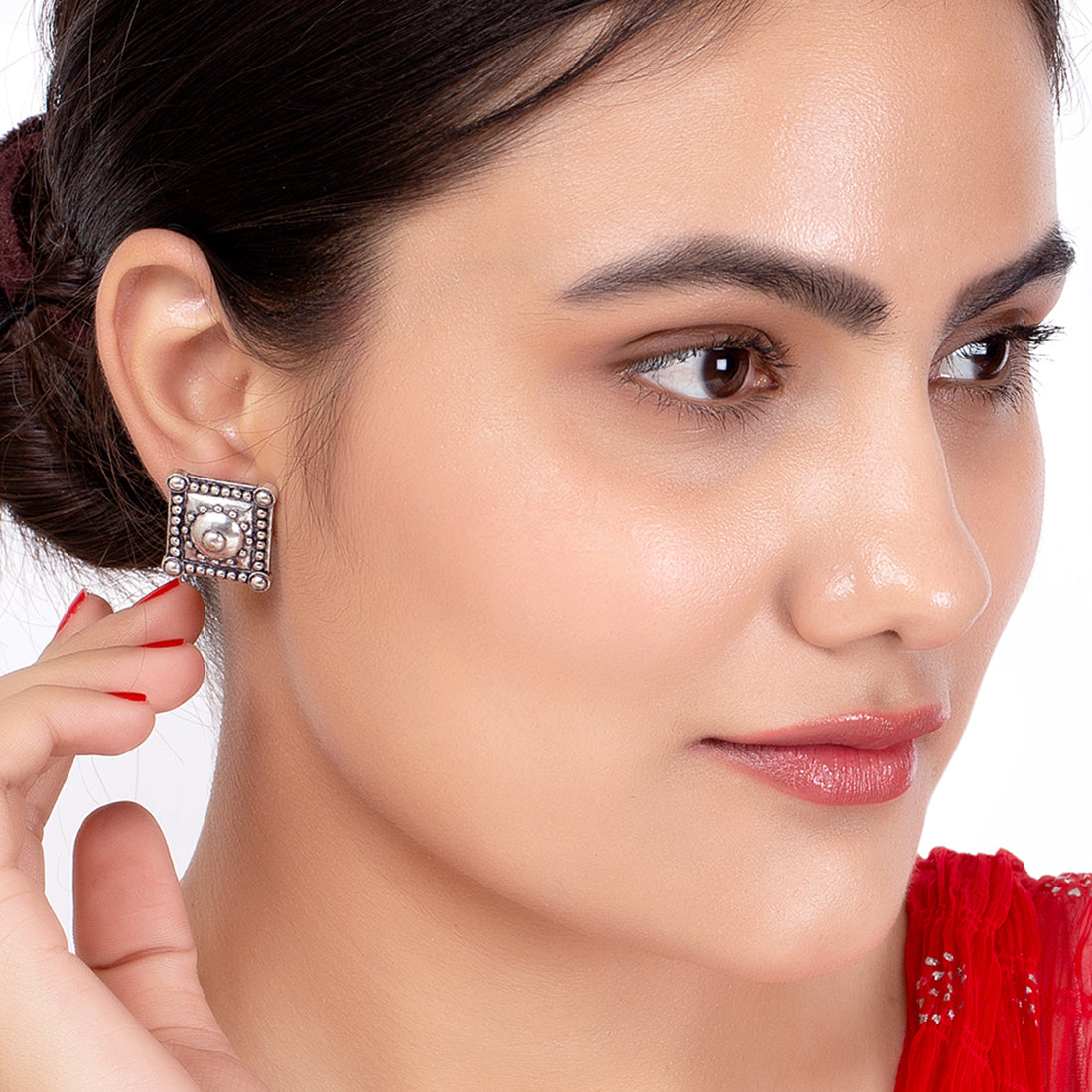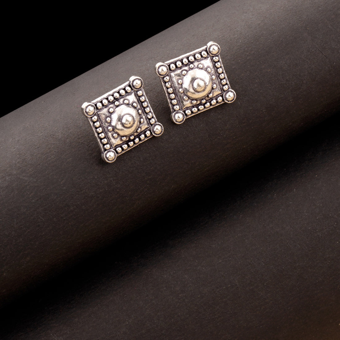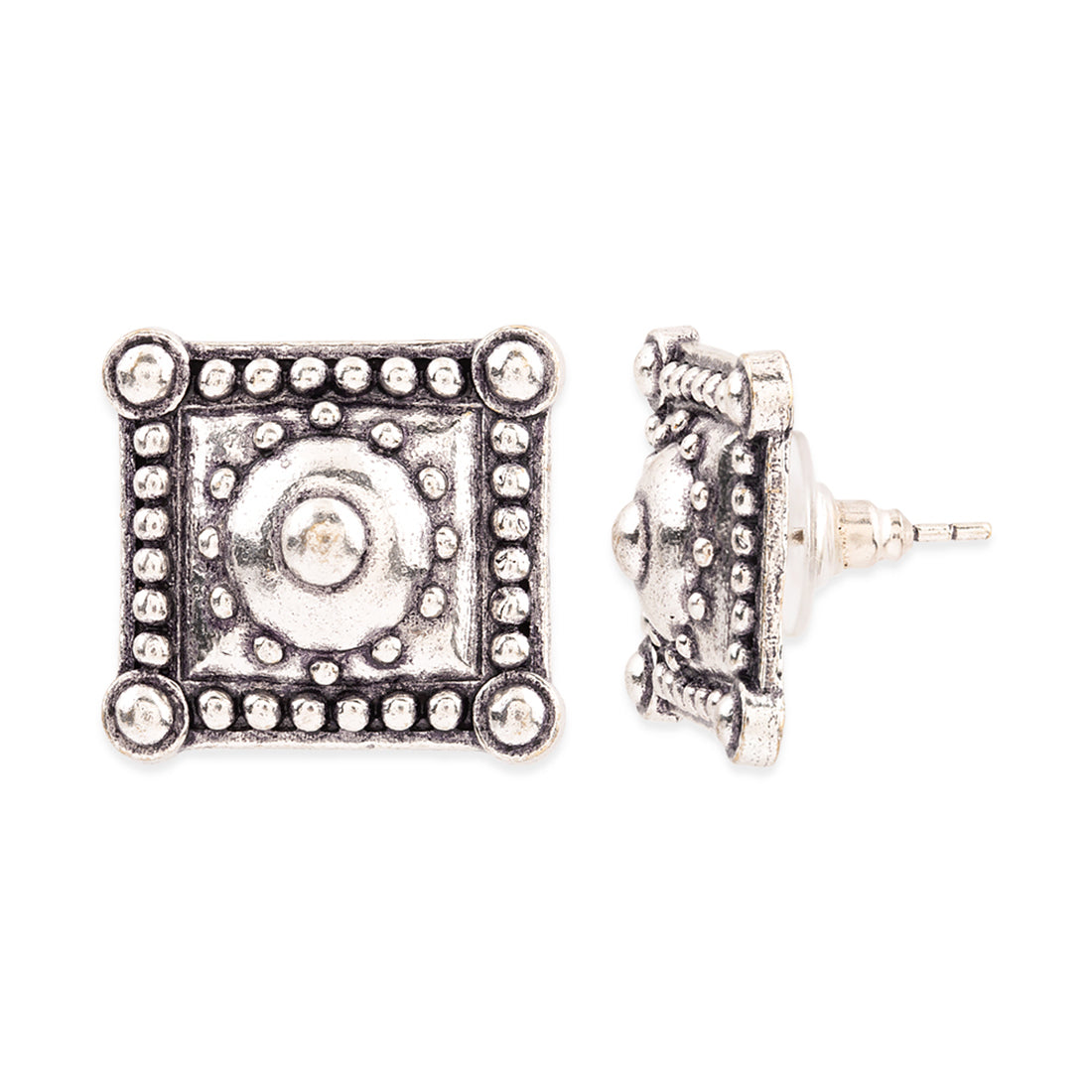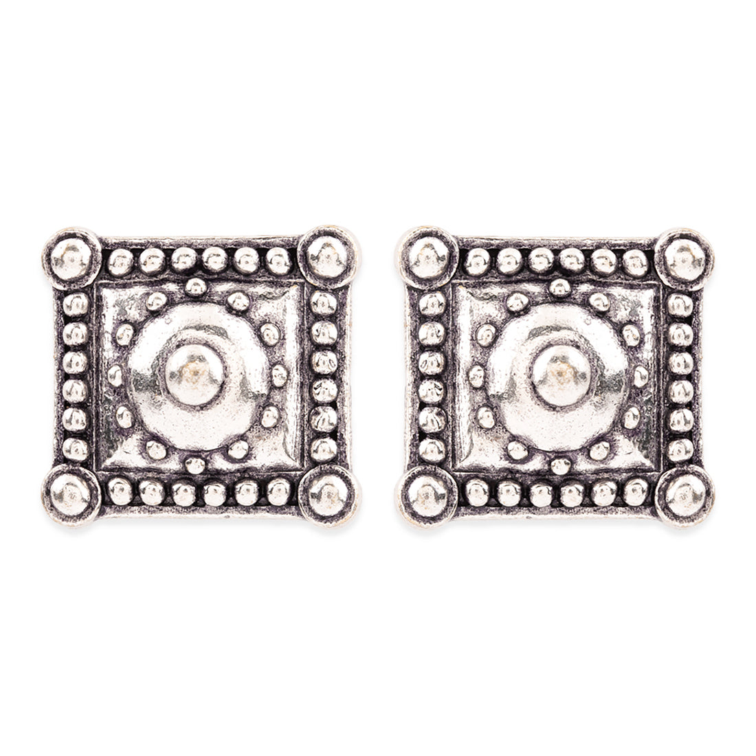 Make a formal look subtle, sophisticated, and stylish by donning these square studs. This brass pair has given an excellent silver oxidized finish. Combine them with your formal dress.