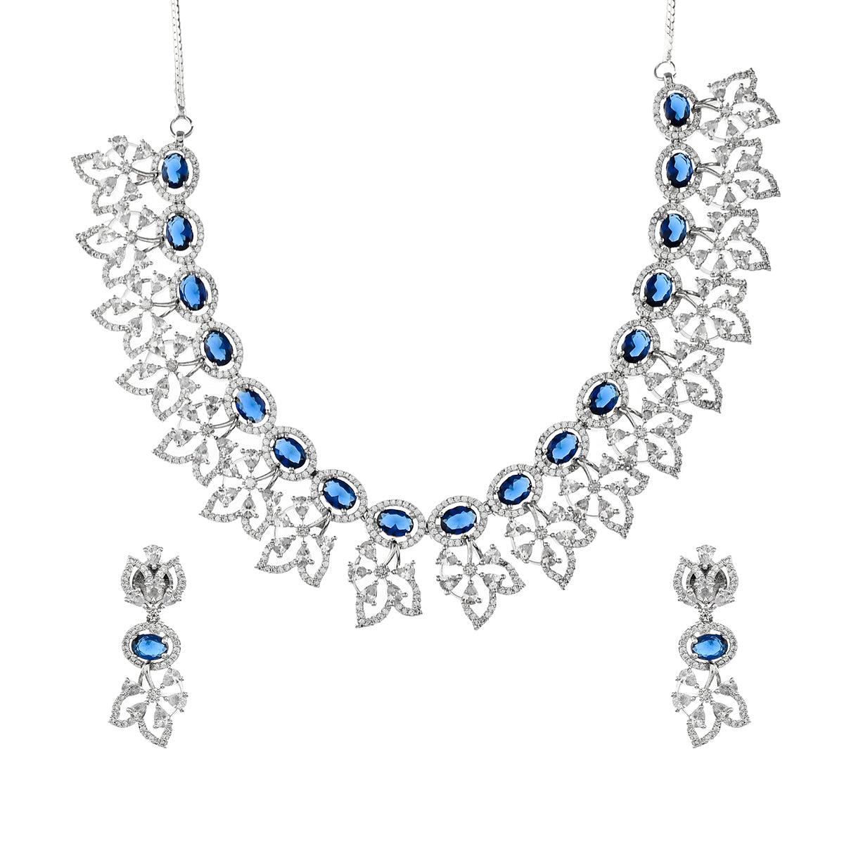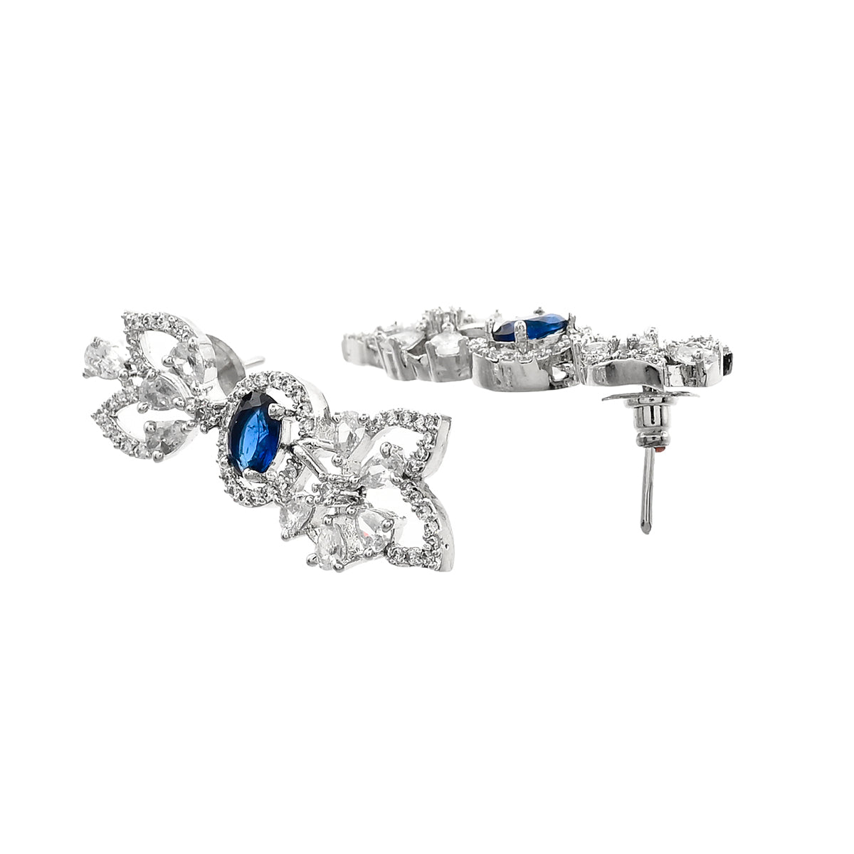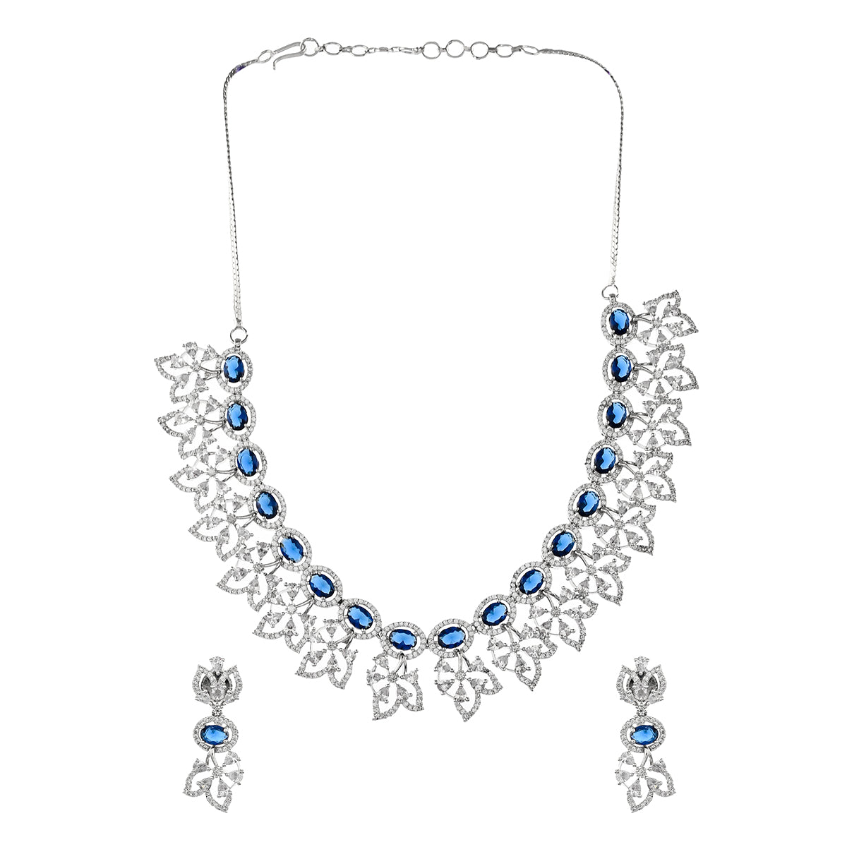 Heavily embellished with zircon gemstones, this jewellery set has been crafted from quality brass. Silver plating adds to the charm of this lightweight and versatile set, which can be paired with just about everything.