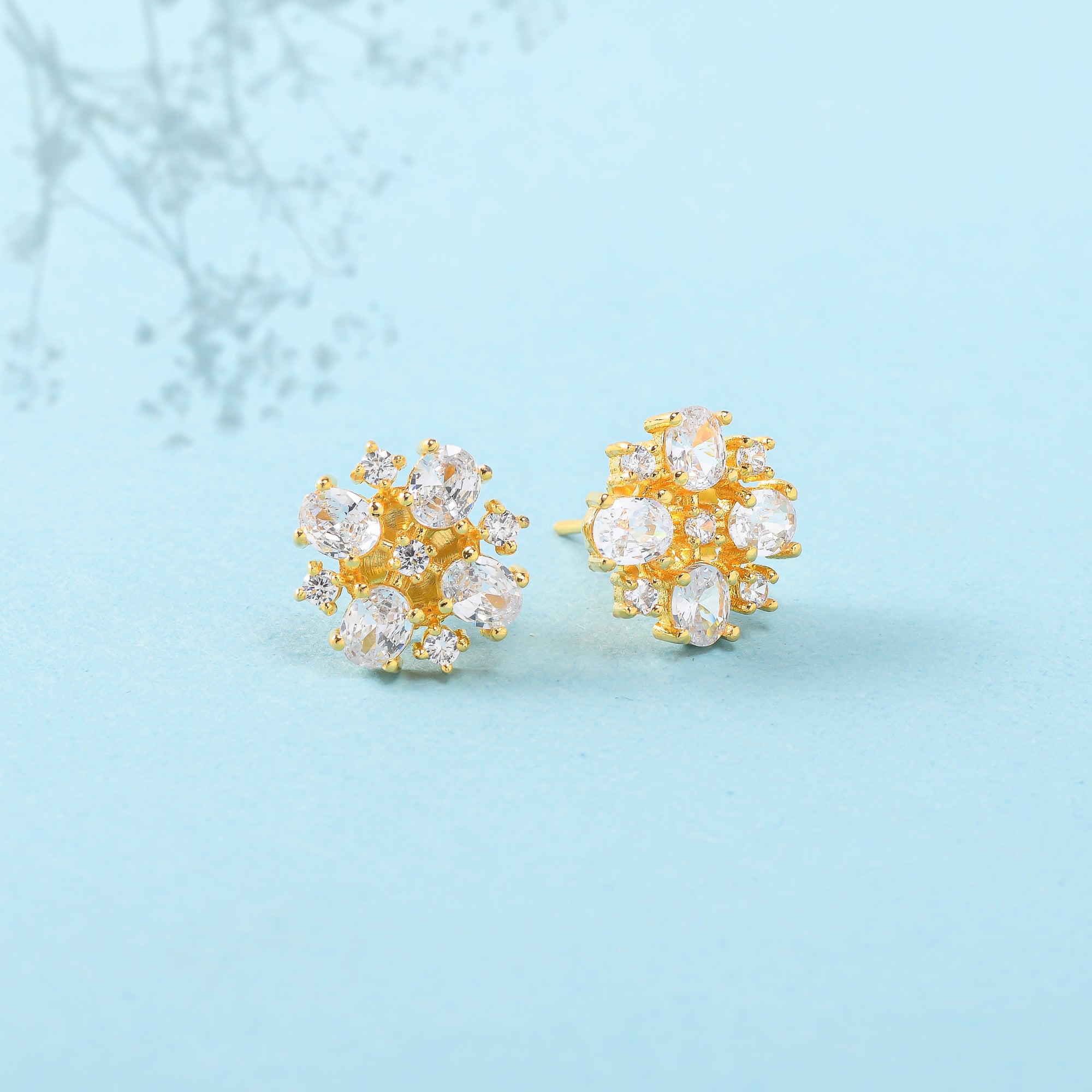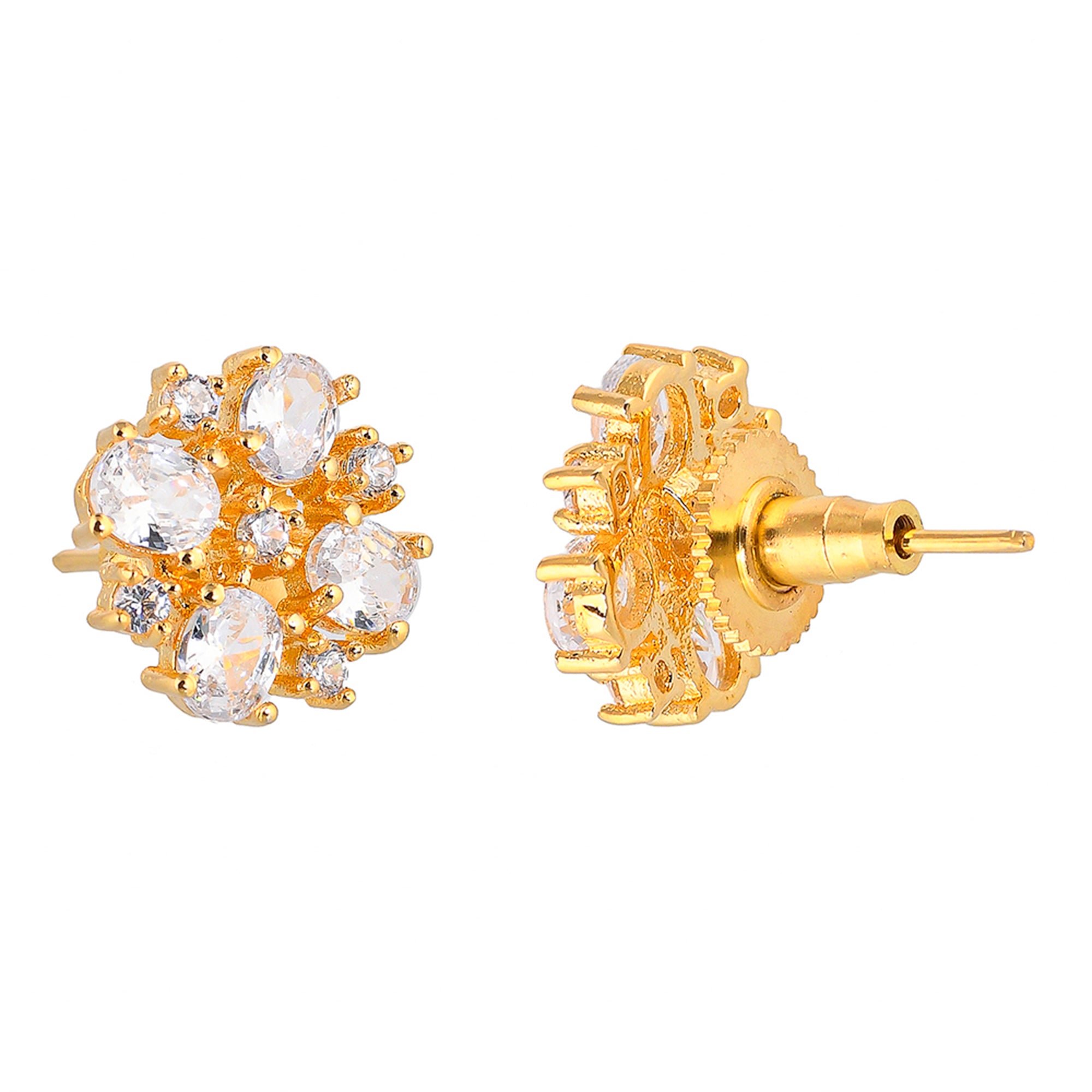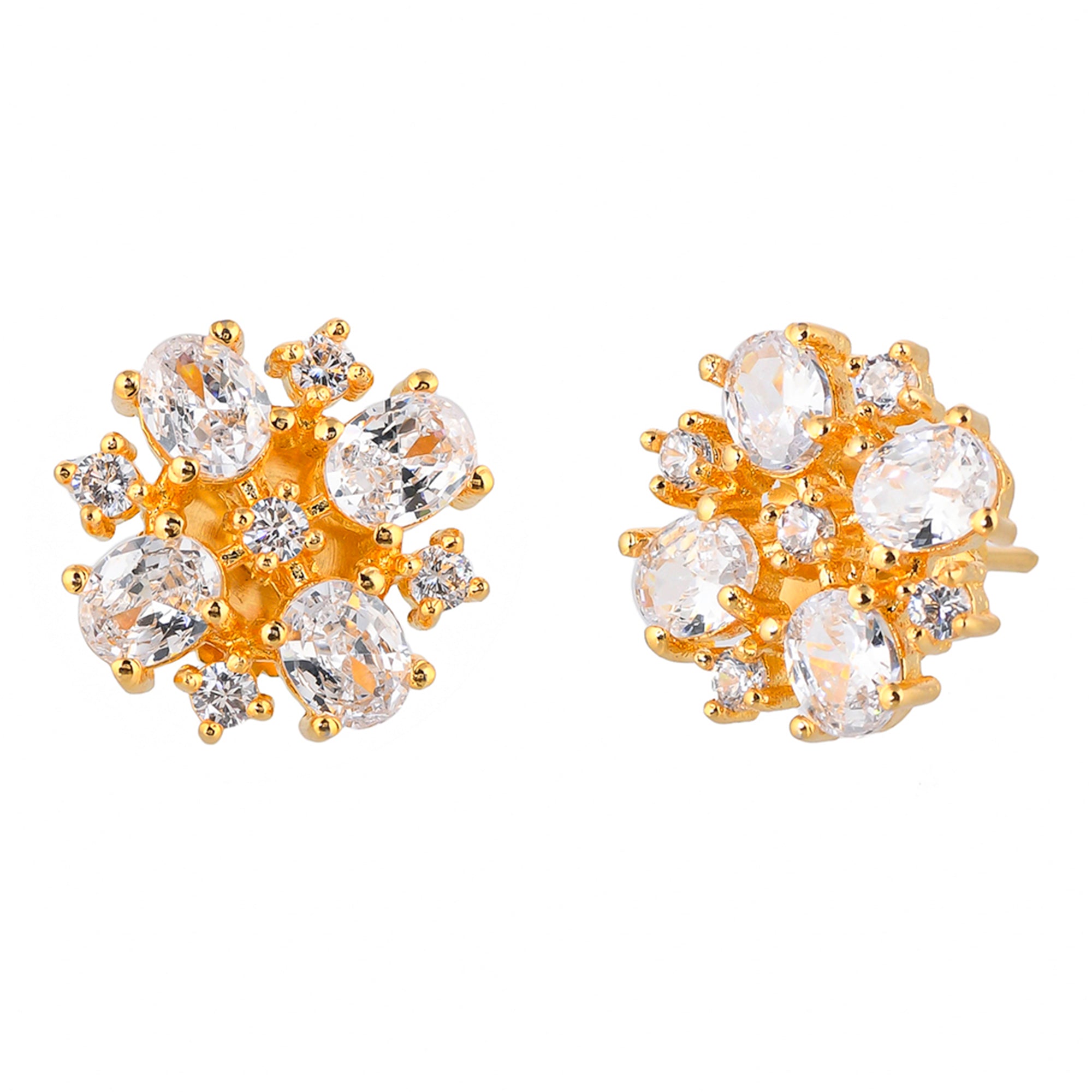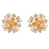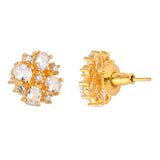 Rectangle cut CZ gemstones adorned casual stud earrings. Gold plated and made from quality brass. Pair with casual attire.