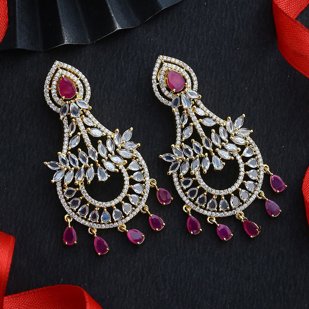Red and White American Diamond Gems Earrings