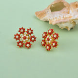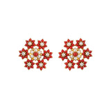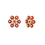 Red CZ Floral Pearl Beaded Bunch Stud Earrings