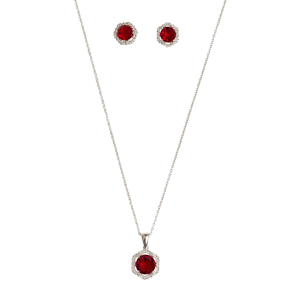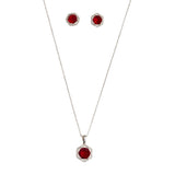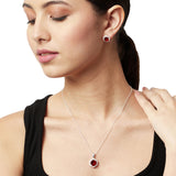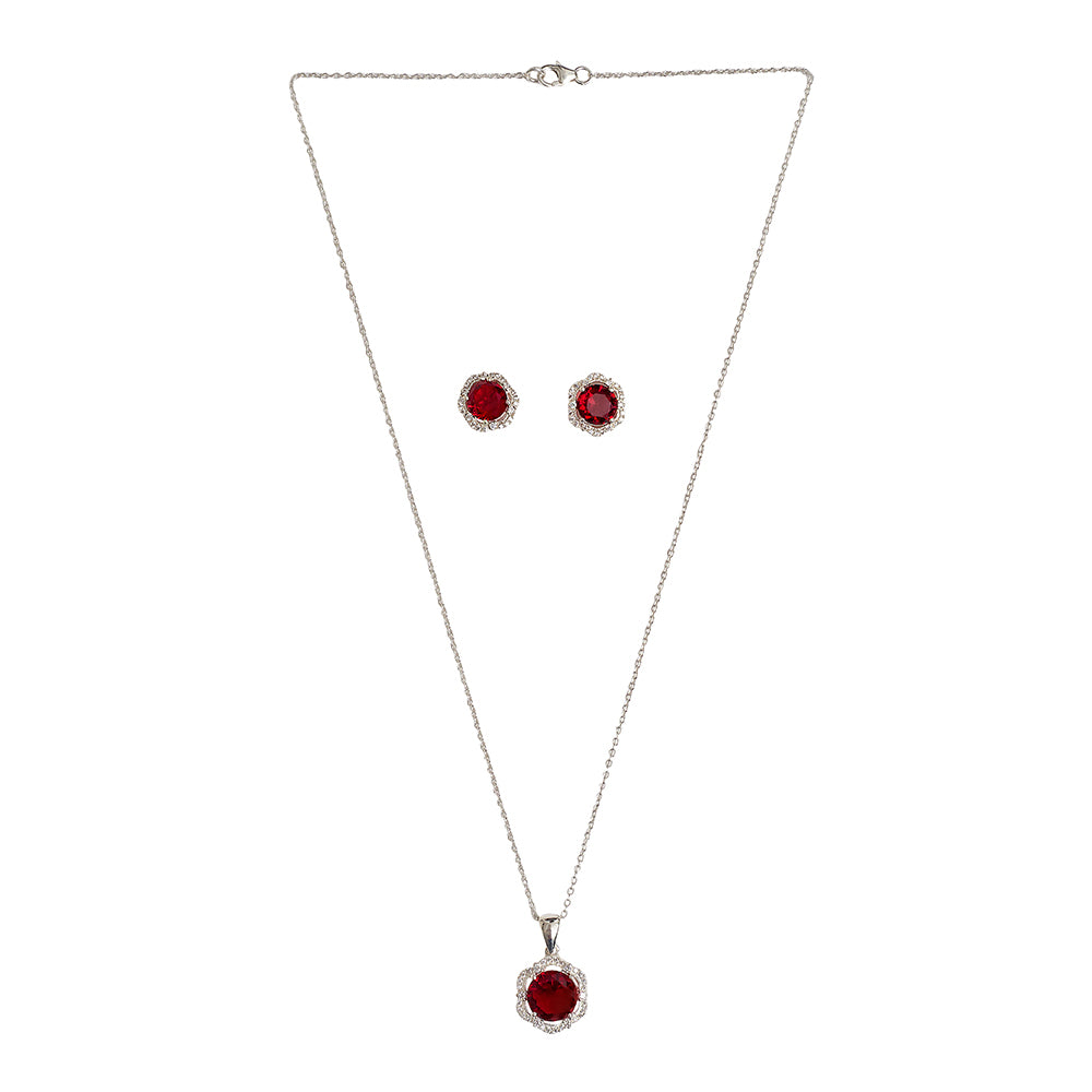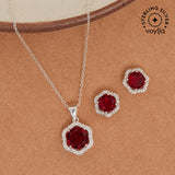 Red Hexagonal CZ Surrounded 925 Sterling Silver Pendant Set