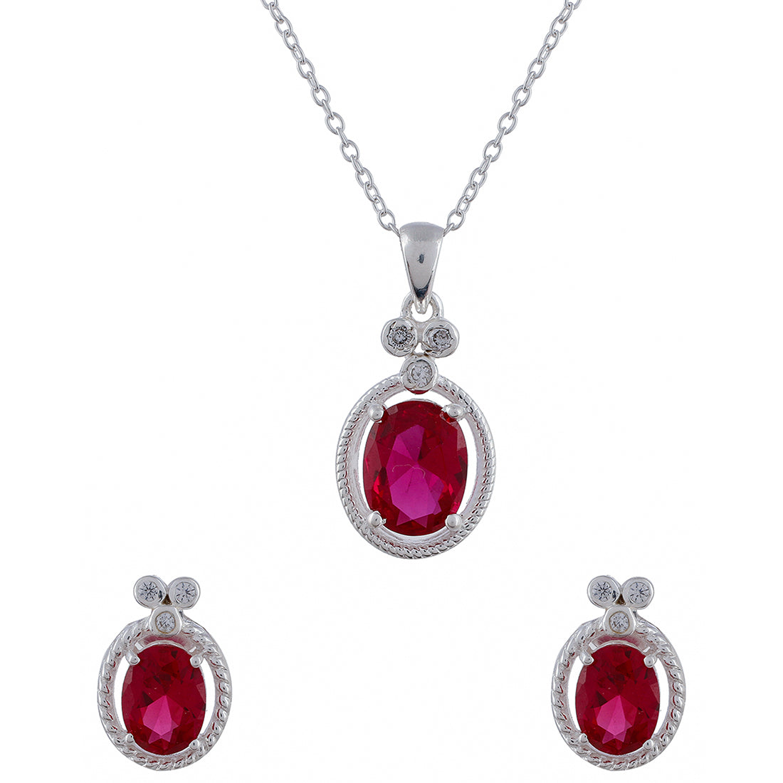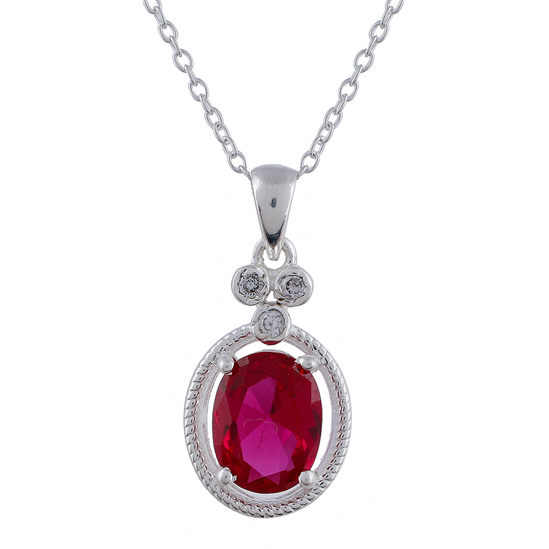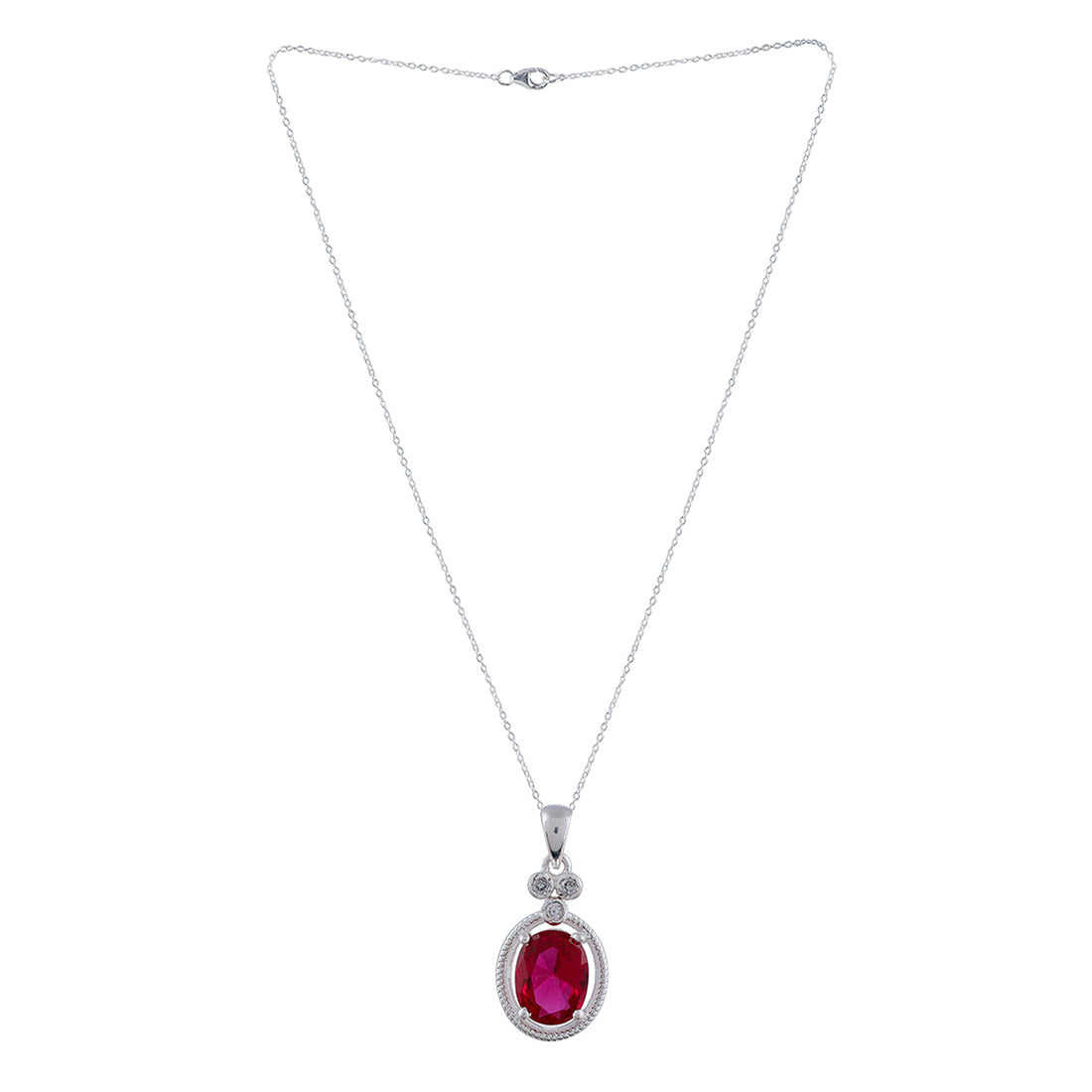 Red Stone Studded Sterling Silver Pendant