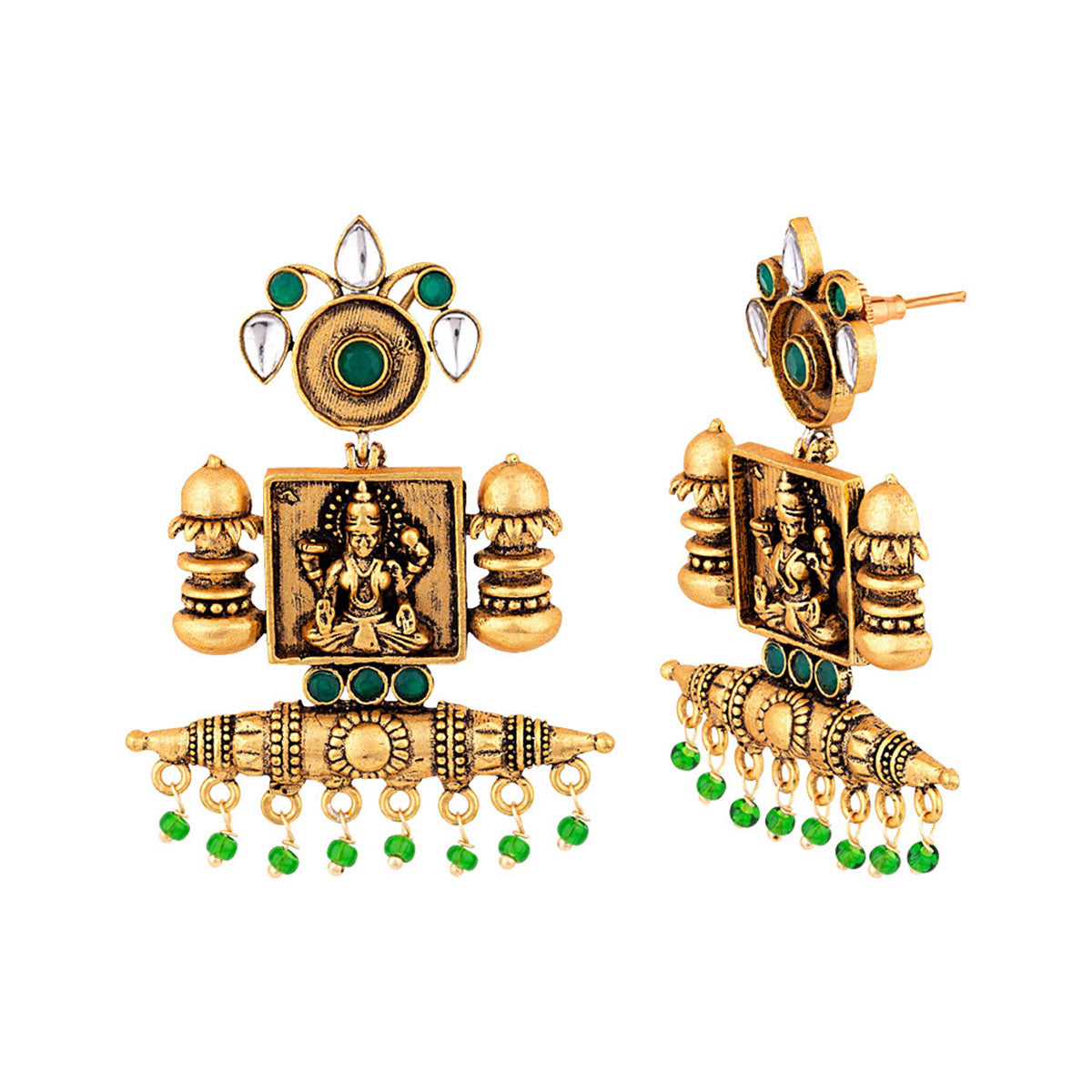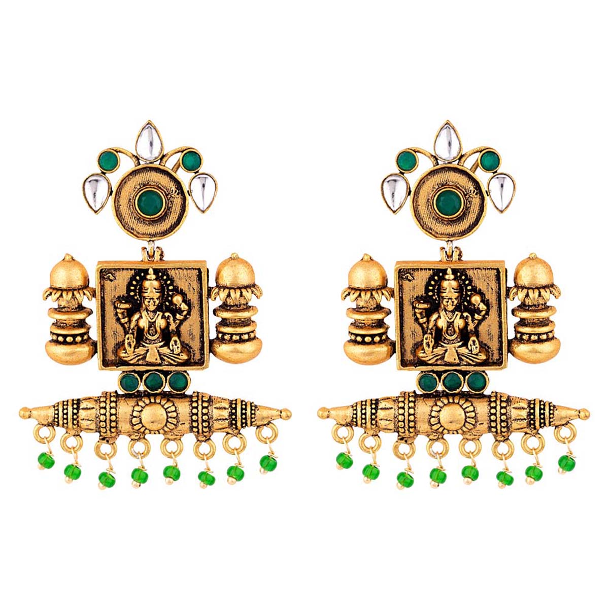 Tribal inspired, lightly embellished earrings fashioned out of brass. Yellow gold plated and a good match for ethnic looks. This piece of jewelry comes with the Voylla assurance of quality and durability.