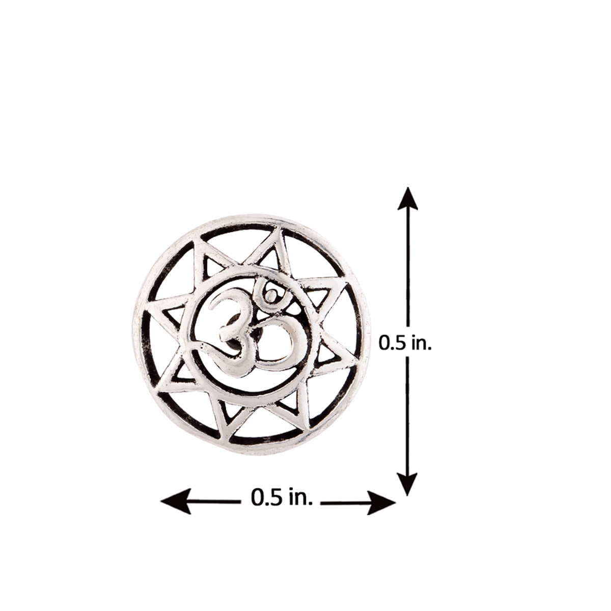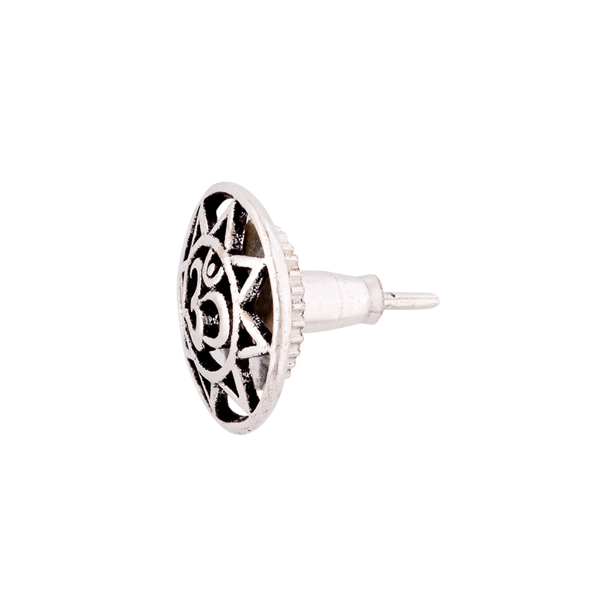 OM inscription stud style earring. Fashioned out of brass and oxidized silver plated. Pair with casual attire.To make your accessories last longer avoid harsh chemicals and moisture. Keep dry, clean with dry cloth and wear with panache. "India�s largest fashion jewelry brand DARE, comes from the House of Voylla as a limited edition of handcrafted accessories for the modern Indian men. "