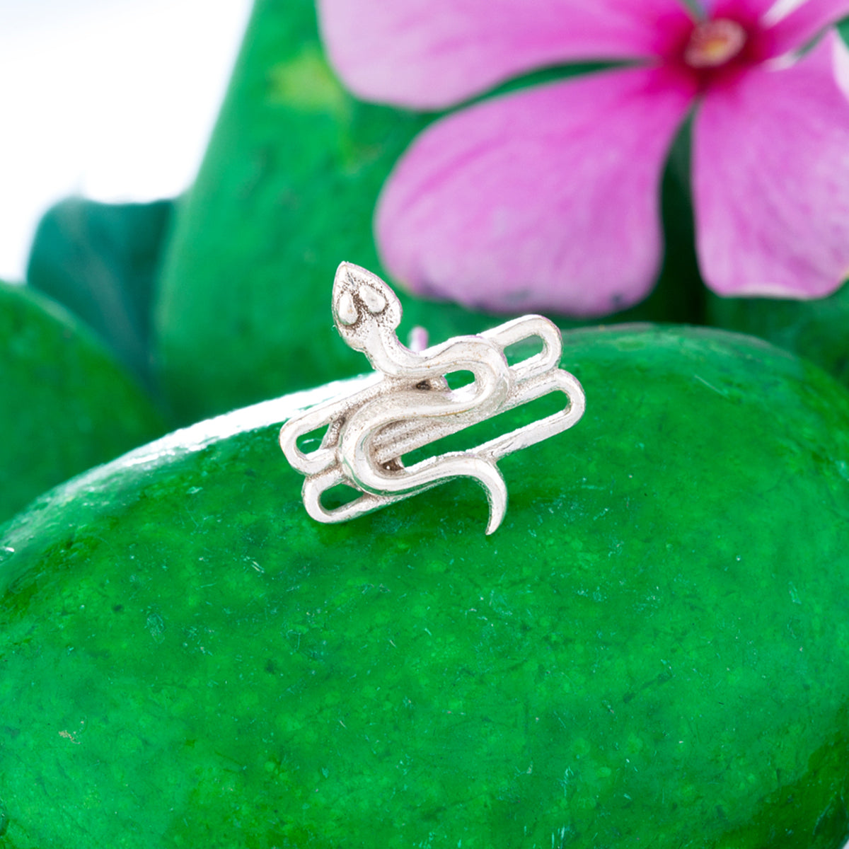 Serpent motif brass stud earring with classic silver plating. Wear with a casual kurta.To make your accessories last longer avoid harsh chemicals and moisture. Keep dry, clean with dry cloth and wear with panache. "India?s largest fashion jewelry brand DARE, comes from the House of Voylla as a limited edition of handcrafted accessories for the modern Indian men. "