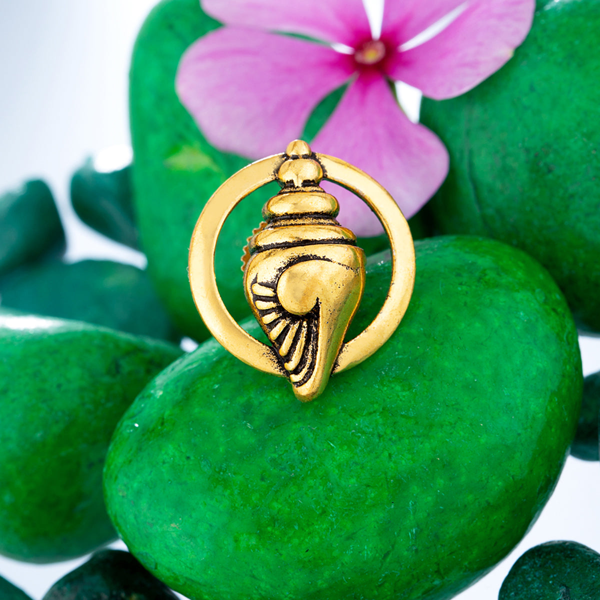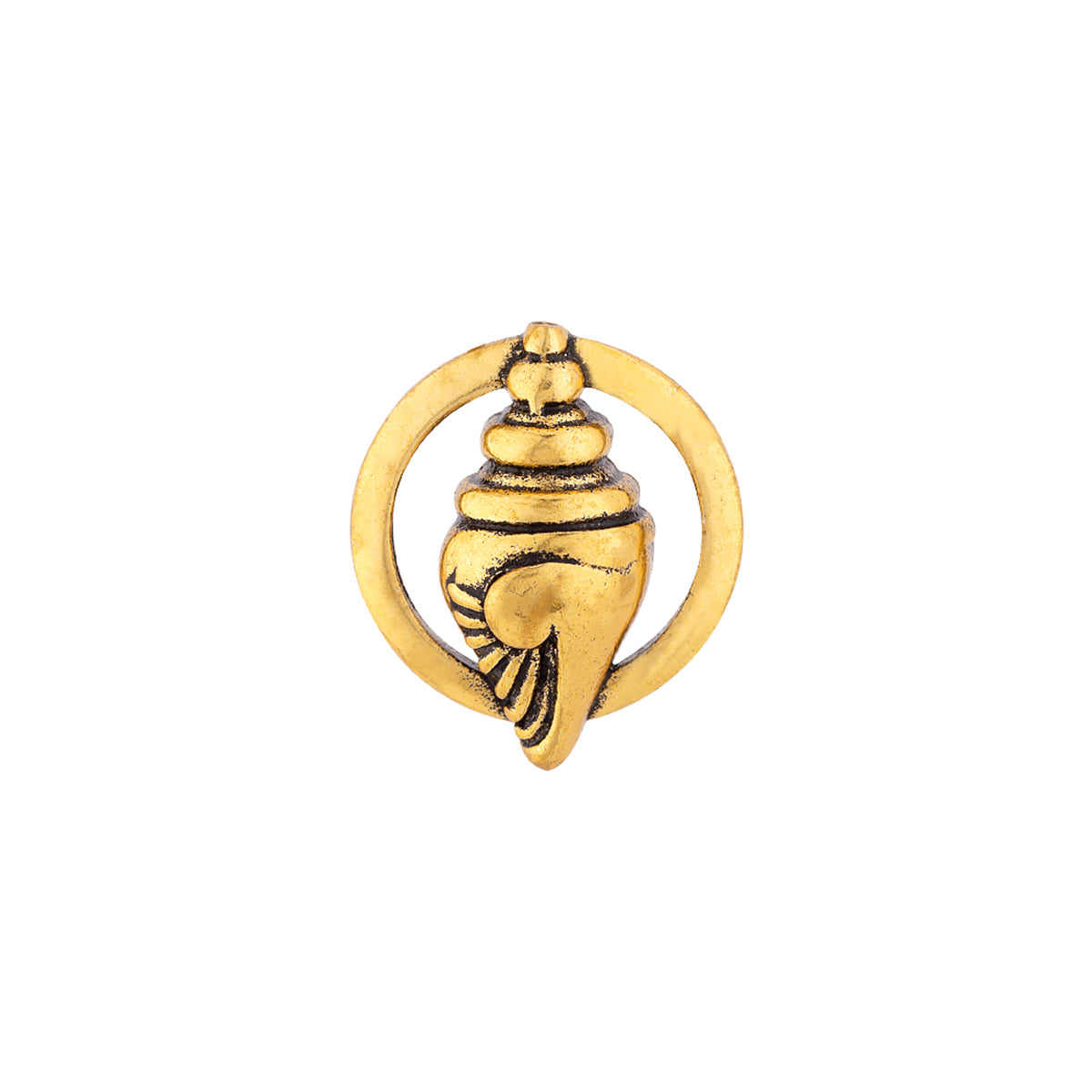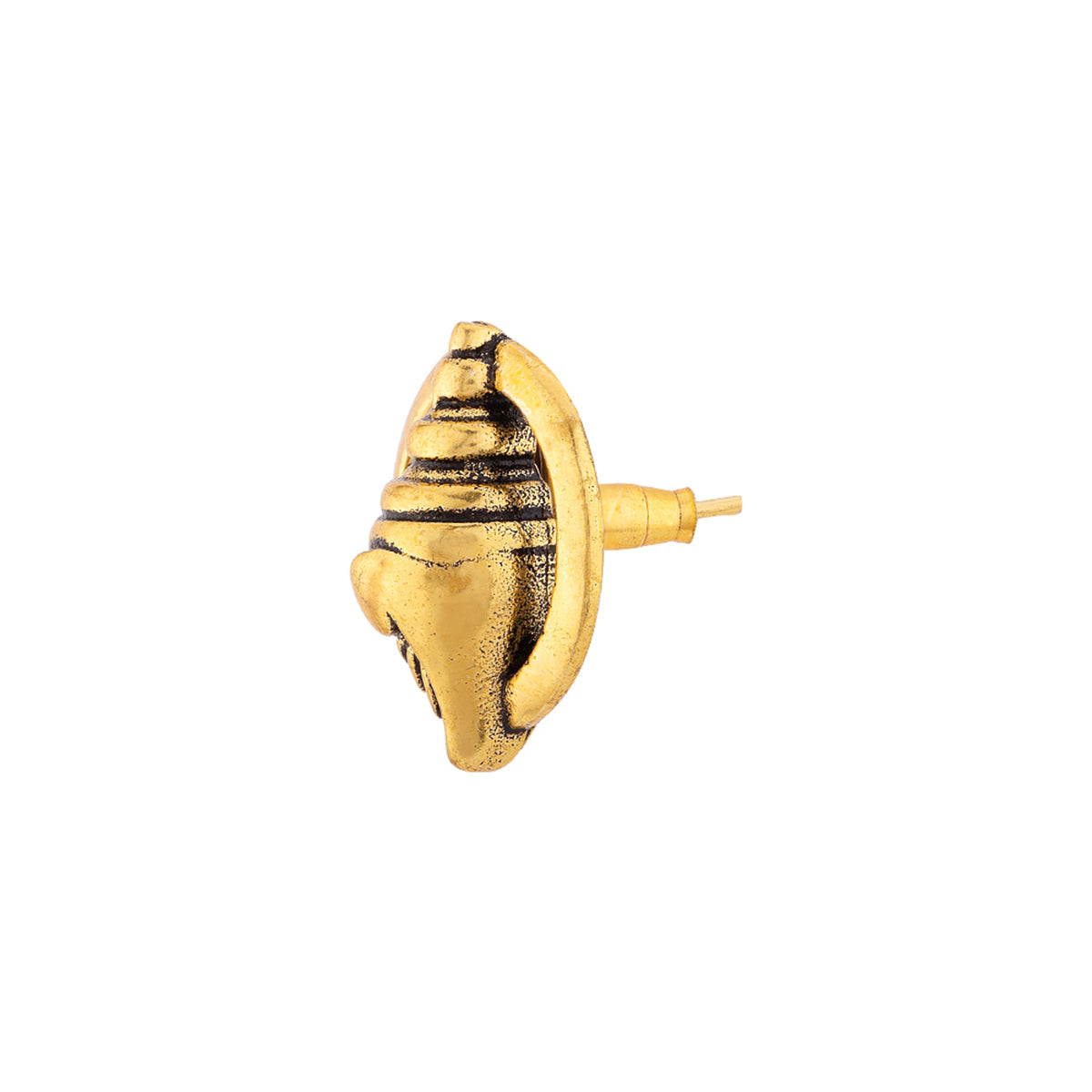 Shiva's shankh motif stud earring. Made from brass and oxidized yellow gold plated. Pair with ethnic attire.To make your accessories last longer avoid harsh chemicals and moisture. Keep dry, clean with dry cloth and wear with panache. "India�s largest fashion jewelry brand DARE, comes from the House of Voylla as a limited edition of handcrafted accessories for the modern Indian men. "