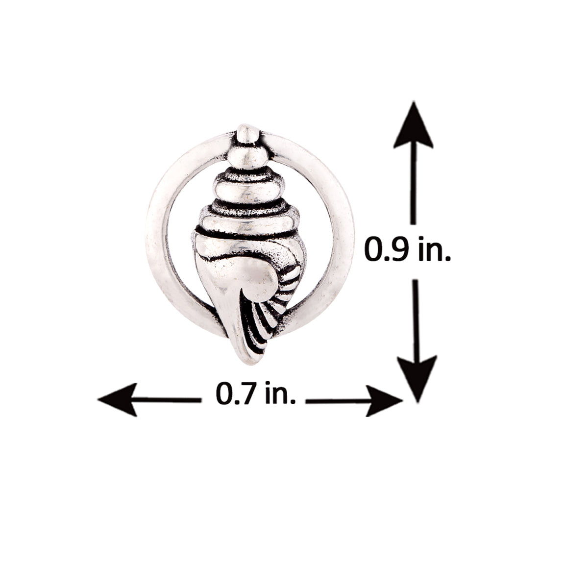 Shankh motif brass stud style earring with oxidized silver plating. Good for everyday wear.To make your accessories last longer avoid harsh chemicals and moisture. Keep dry, clean with dry cloth and wear with panache. "India�s largest fashion jewelry brand DARE, comes from the House of Voylla as a limited edition of handcrafted accessories for the modern Indian men. "