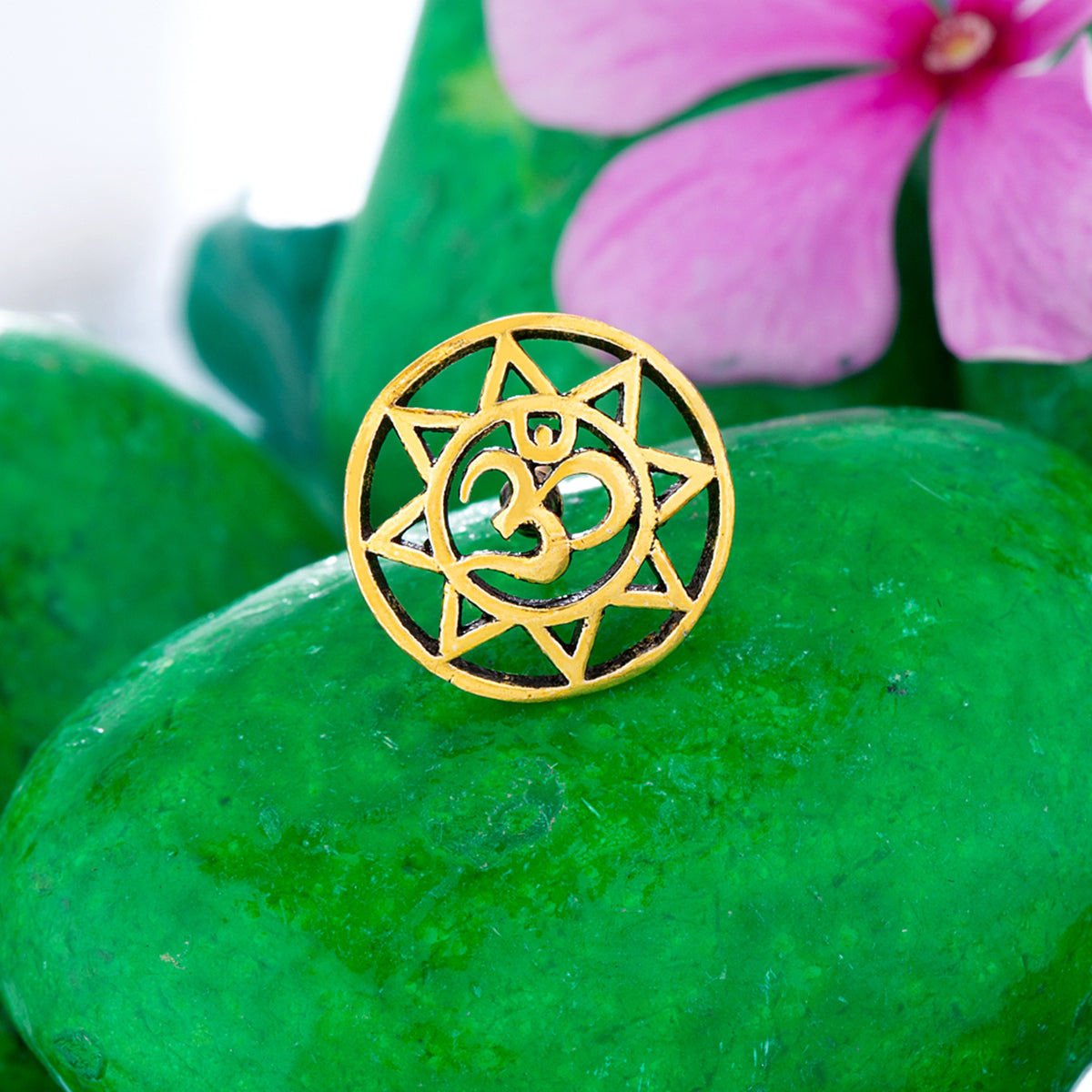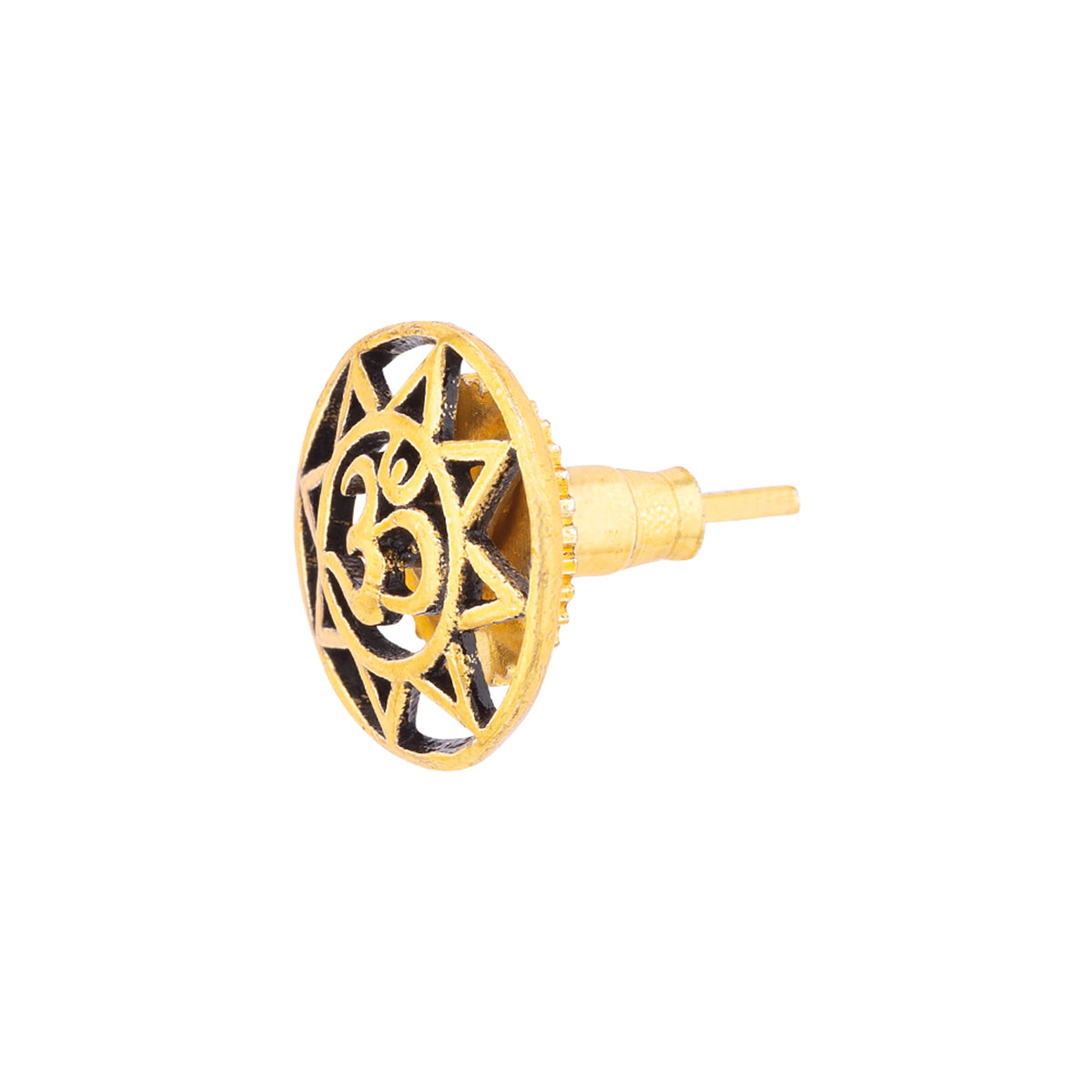 Sun and OM stud earring. Made from brass and oxidized yellow gold plated. Good for everyday wear.To make your accessories last longer avoid harsh chemicals and moisture. Keep dry, clean with dry cloth and wear with panache. "India�s largest fashion jewelry brand DARE, comes from the House of Voylla as a limited edition of handcrafted accessories for the modern Indian men. "