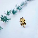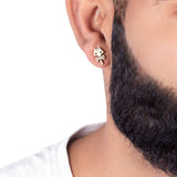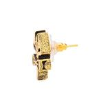Trishul and damru motifs brass earring with oxidised gold plating. Good for everyday wear. This piece of jewelry comes with the Voylla assurance of quality and durability.