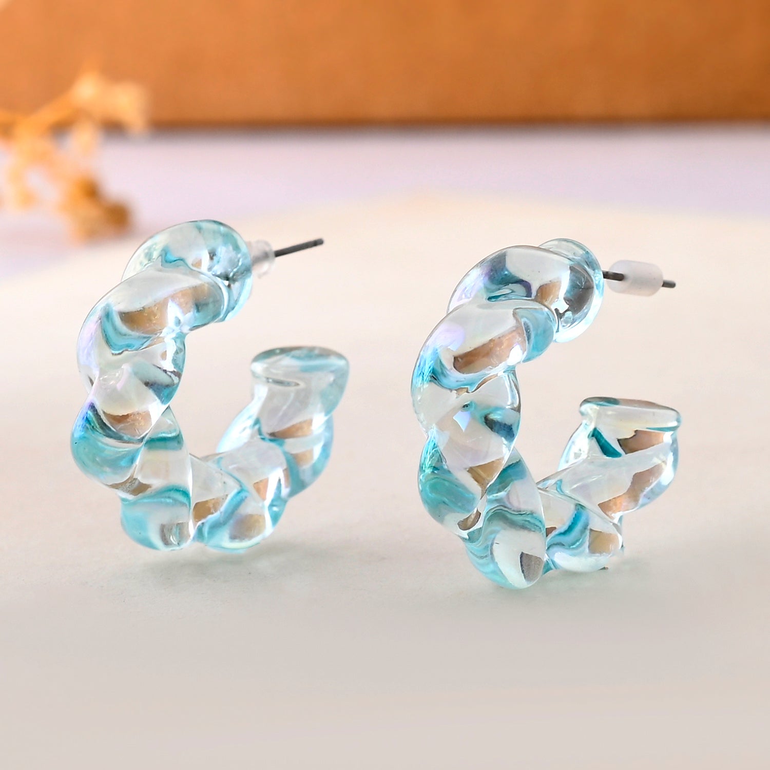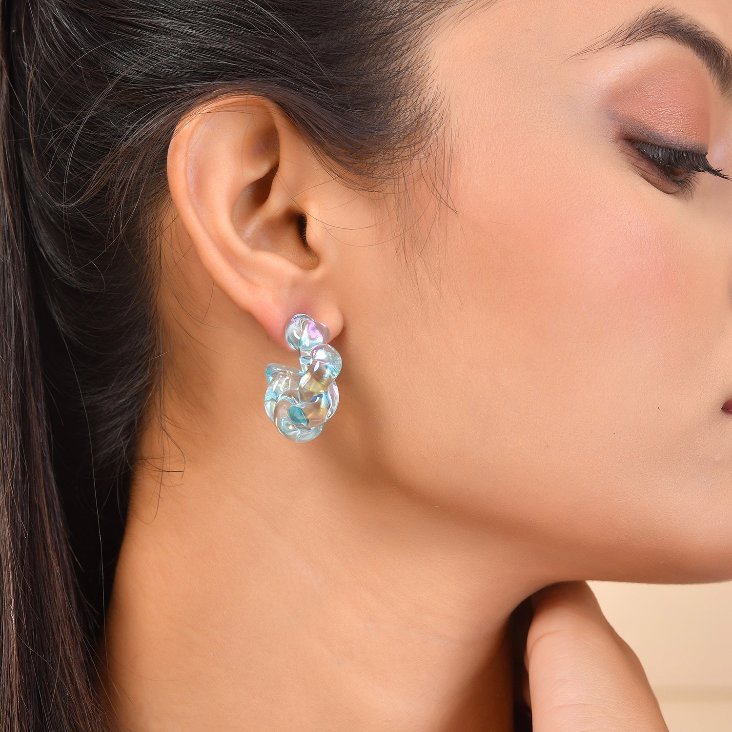 Immerse in the elegance of Voylla’s latest offering, a pair of exquisite resin earrings designed to captivate and charm. These earrings are a testament to the modern woman’s love for versatility, seamlessly transitioning from casual wear to party wear.The design boasts a unique twist, featuring an entwined pattern that exudes sophistication and a playful spirit. The soft palette of Blue swirls with hints of white creates an enchanting marble effect, making these earrings a delightful accessory for office wear or travel. Their lightweight nature ensures comfort, perfect for long festive wear or as an elegant addition to your western attire. As Rakshabandhan and diwali approaches, consider these enchanting resin earrings by Voylla as a thoughtful rakhi gift for your beloved sister or mother. They are not just jewelry; they are an expression of love and appreciation, promising to be cherished as much for their beauty as for their sentiment.