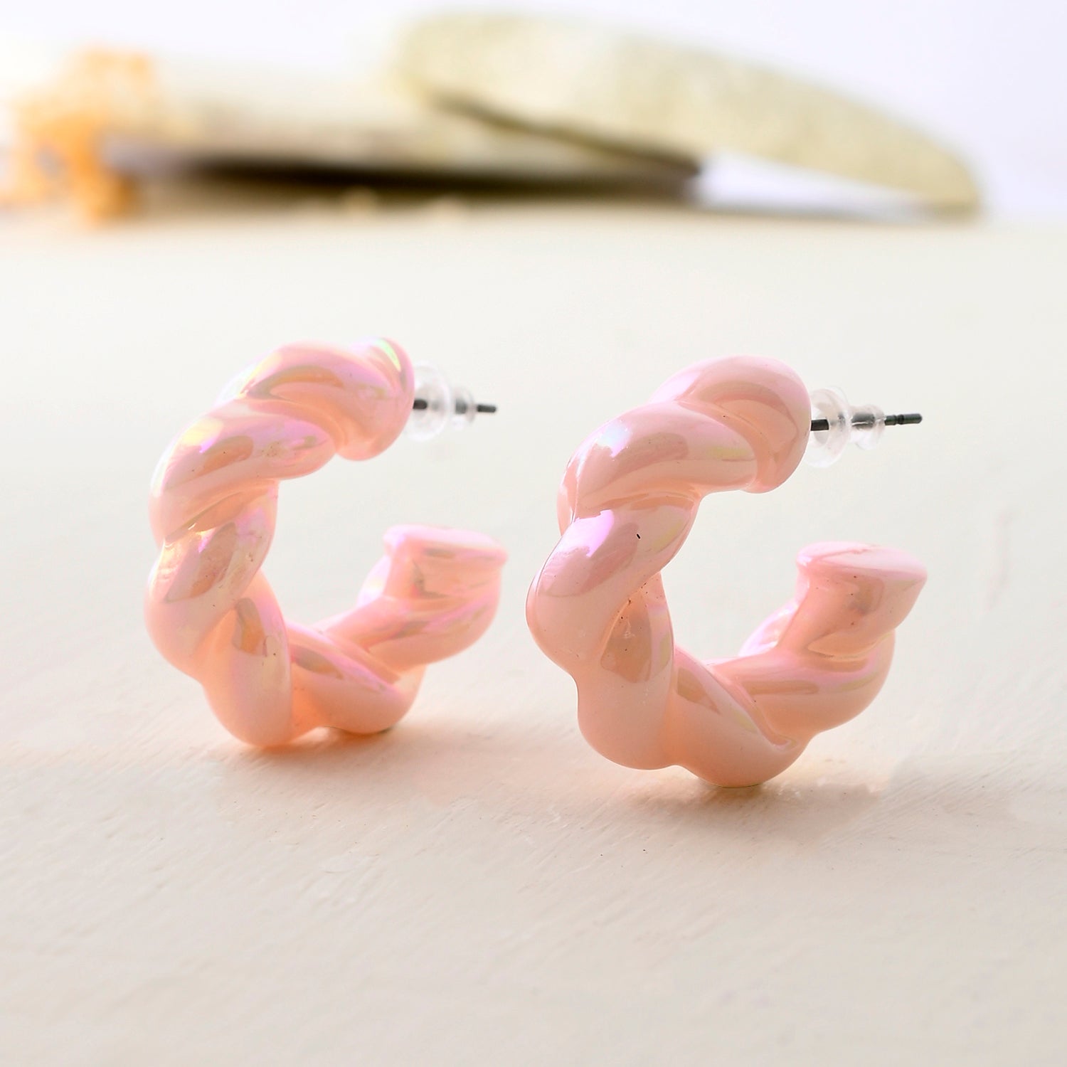 Immerse in the elegance of Voylla’s latest offering, a pair of exquisite resin earrings designed to captivate and charm. These earrings are a testament to the modern woman’s love for versatility, seamlessly transitioning from casual wear to party wear.The design boasts a unique twist, featuring an entwined pattern that exudes sophistication and a playful spirit. The soft palette of pink swirls with hints of white creates an enchanting marble effect, making these earrings a delightful accessory for office wear or travel. Their lightweight nature ensures comfort, perfect for long festive wear or as an elegant addition to your western attire. As Rakshabandhan and diwali approaches, consider these enchanting resin earrings by Voylla as a thoughtful rakhi gift for your beloved sister or mother. They are not just jewelry; they are an expression of love and appreciation, promising to be cherished as much for their beauty as for their sentiment.
