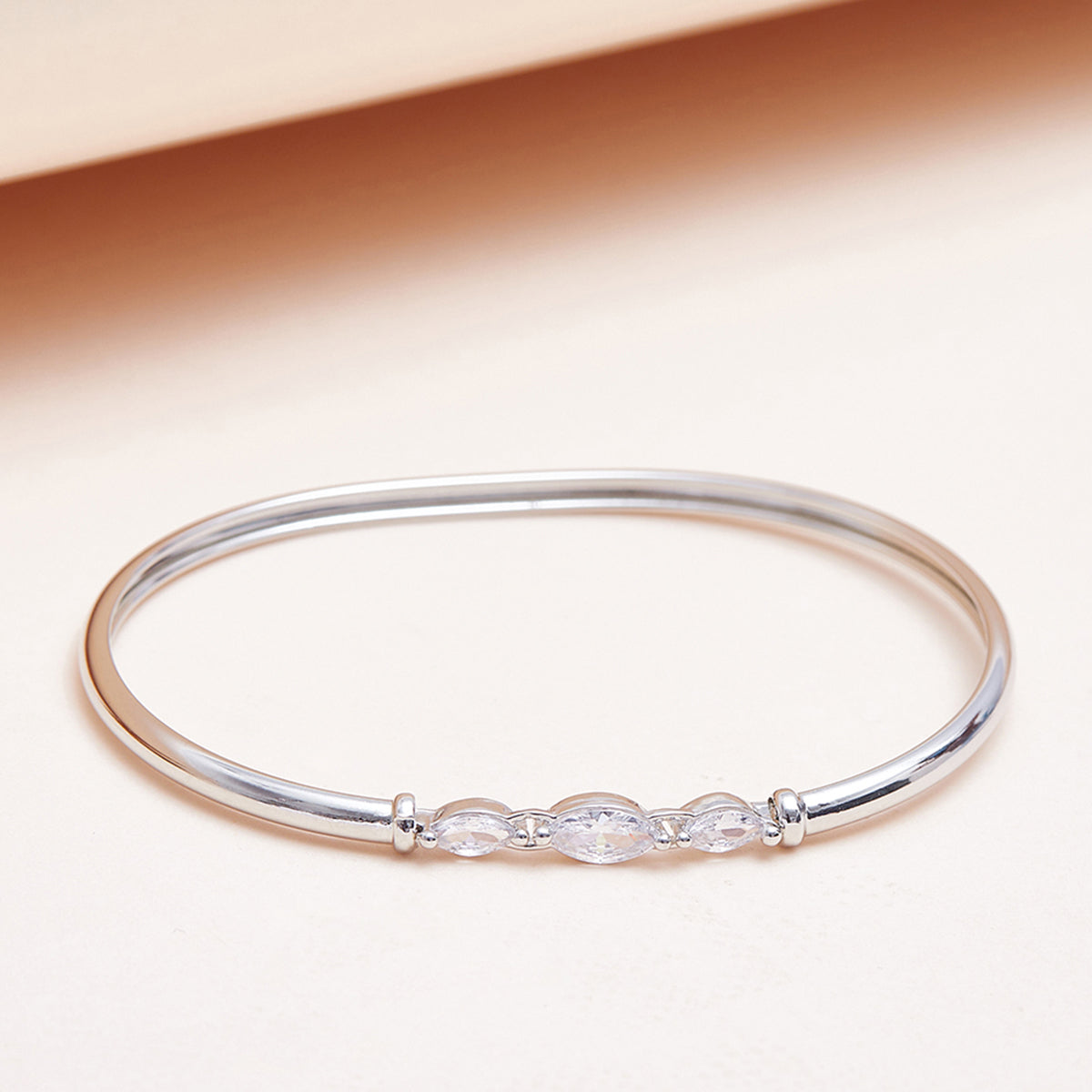 Sparkling Elegance Rhodium Overlay Bracelet with Solid Design