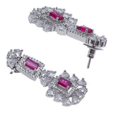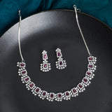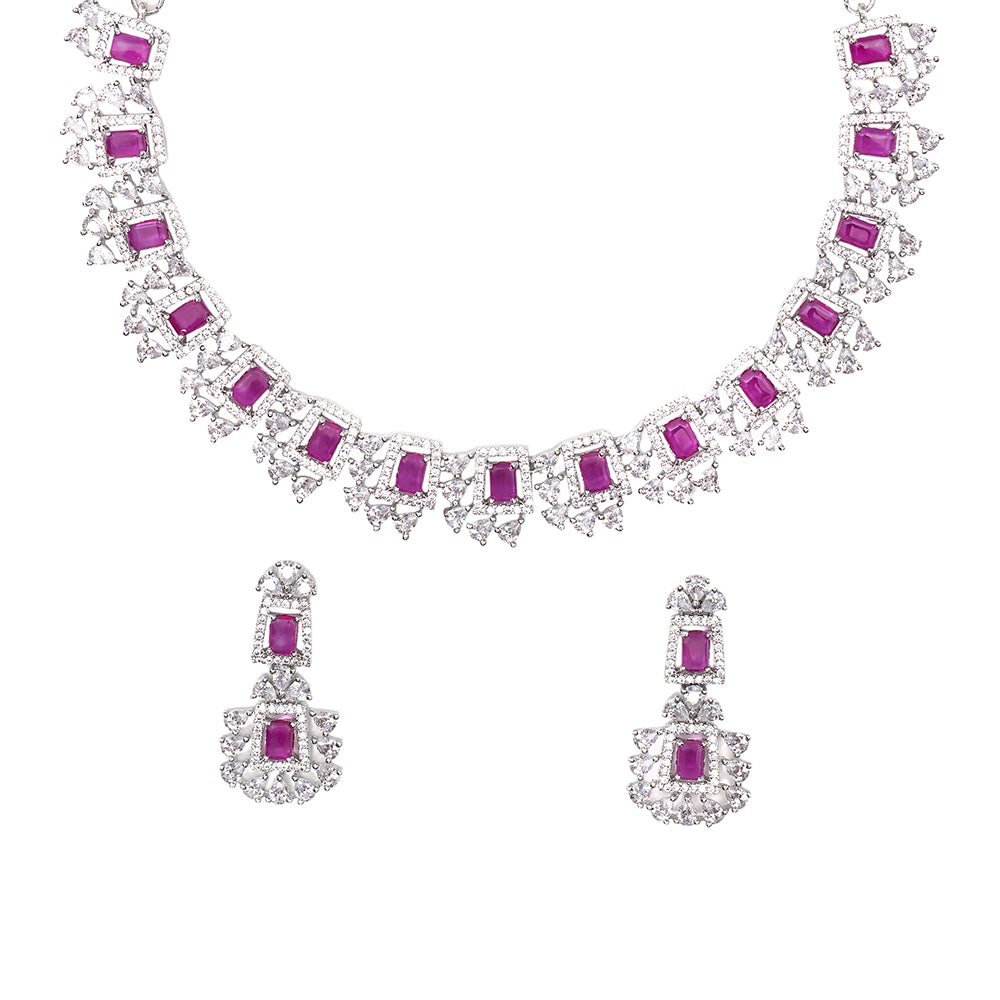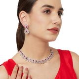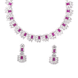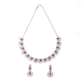 Rhodium Plated Cz Studded Necklace Set With Pink Stones