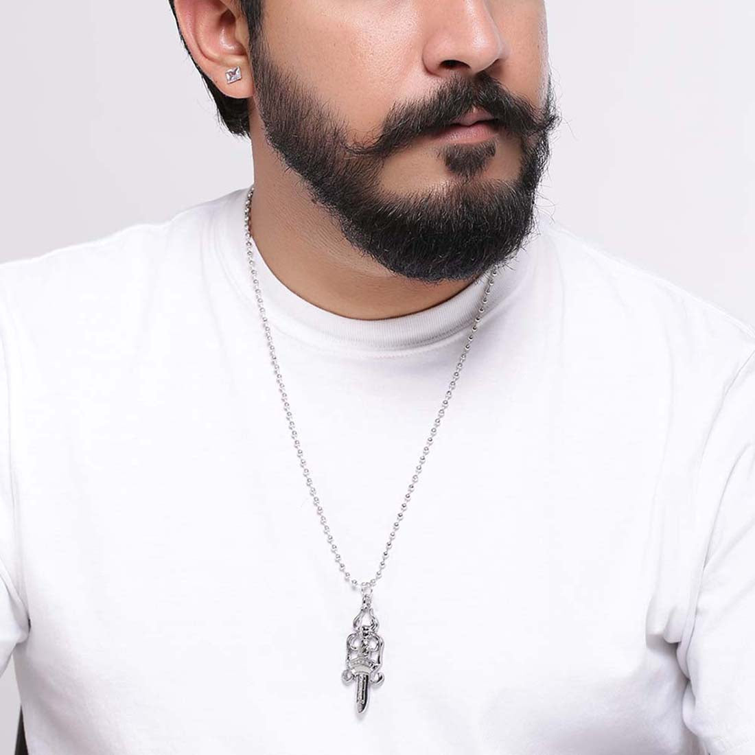 Aztec inspired pendant made from stainless steel. Silver plated. Wear with party attire. To make your accessories last longer avoid harsh chemicals and moisture. Keep dry, clean with dry cloth and wear with panache. "India?s largest fashion jewelry brand DARE, comes from the House of Voylla as a limited edition of handcrafted accessories for the modern Indian men. "
