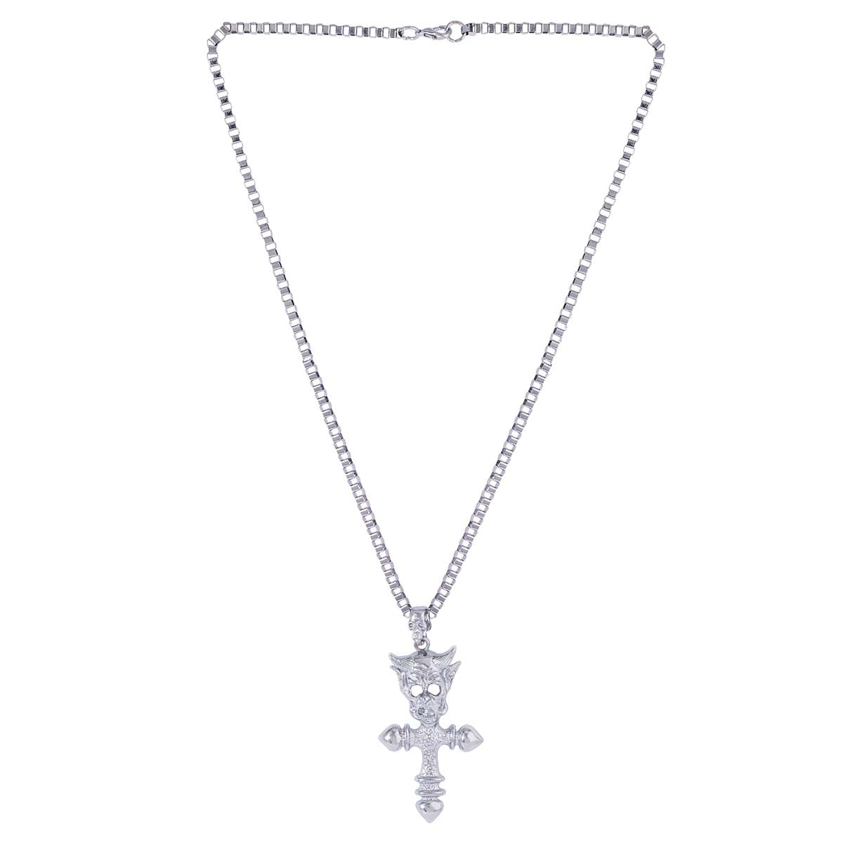 Beast motif pendant made from stainless steel. Silver plated. Pair with casual looks. To make your accessories last longer avoid harsh chemicals and moisture. Keep dry, clean with dry cloth and wear with panache. "India?s largest fashion jewelry brand DARE, comes from the House of Voylla as a limited edition of handcrafted accessories for the modern Indian men. "