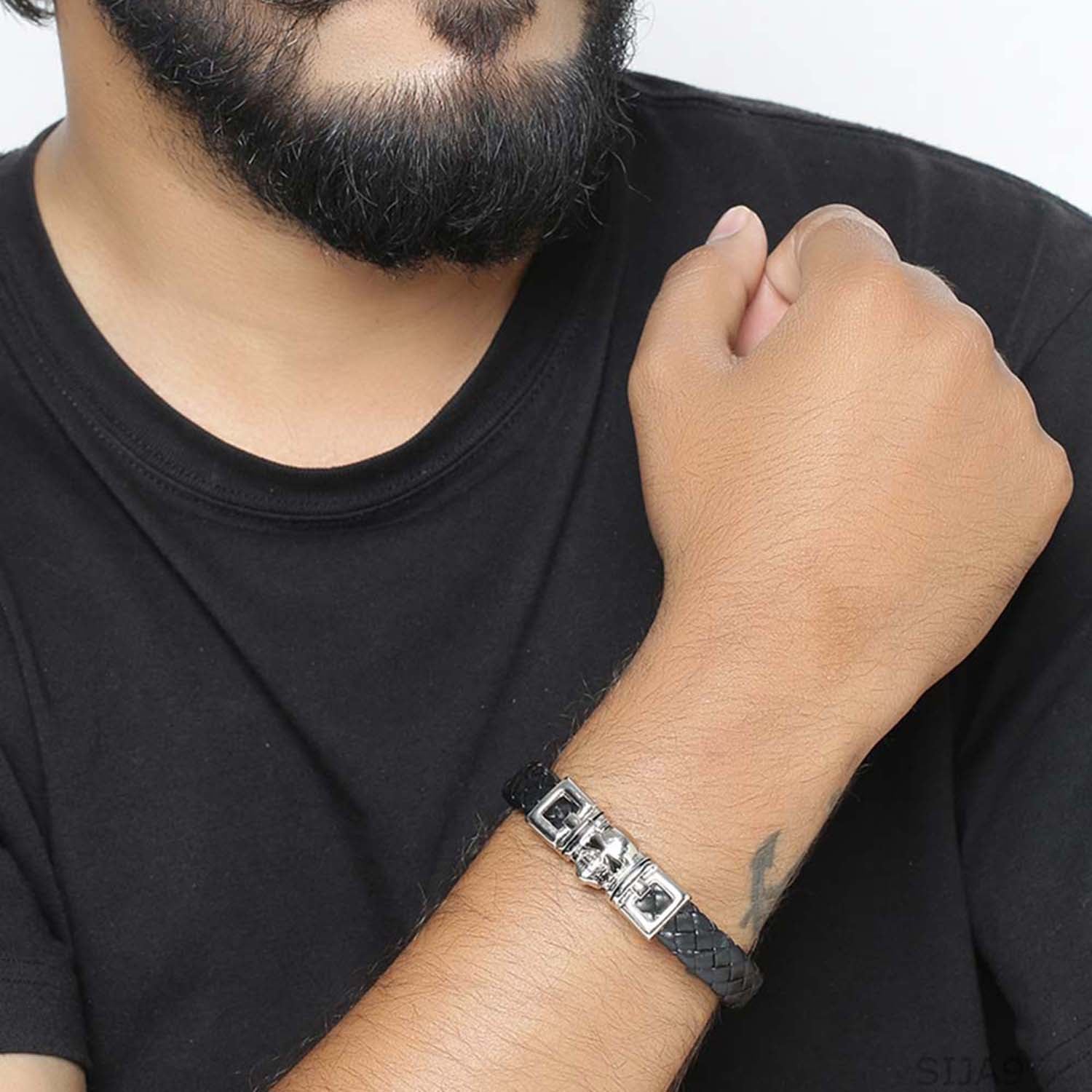 Hooks motif bracelet made from stainless steel. Silver plated. Pair with everyday attire. To make your accessories last longer avoid harsh chemicals and moisture. Keep dry, clean with dry cloth and wear with panache. "India?s largest fashion jewelry brand DARE, comes from the House of Voylla as a limited edition of handcrafted accessories for the modern Indian men. "