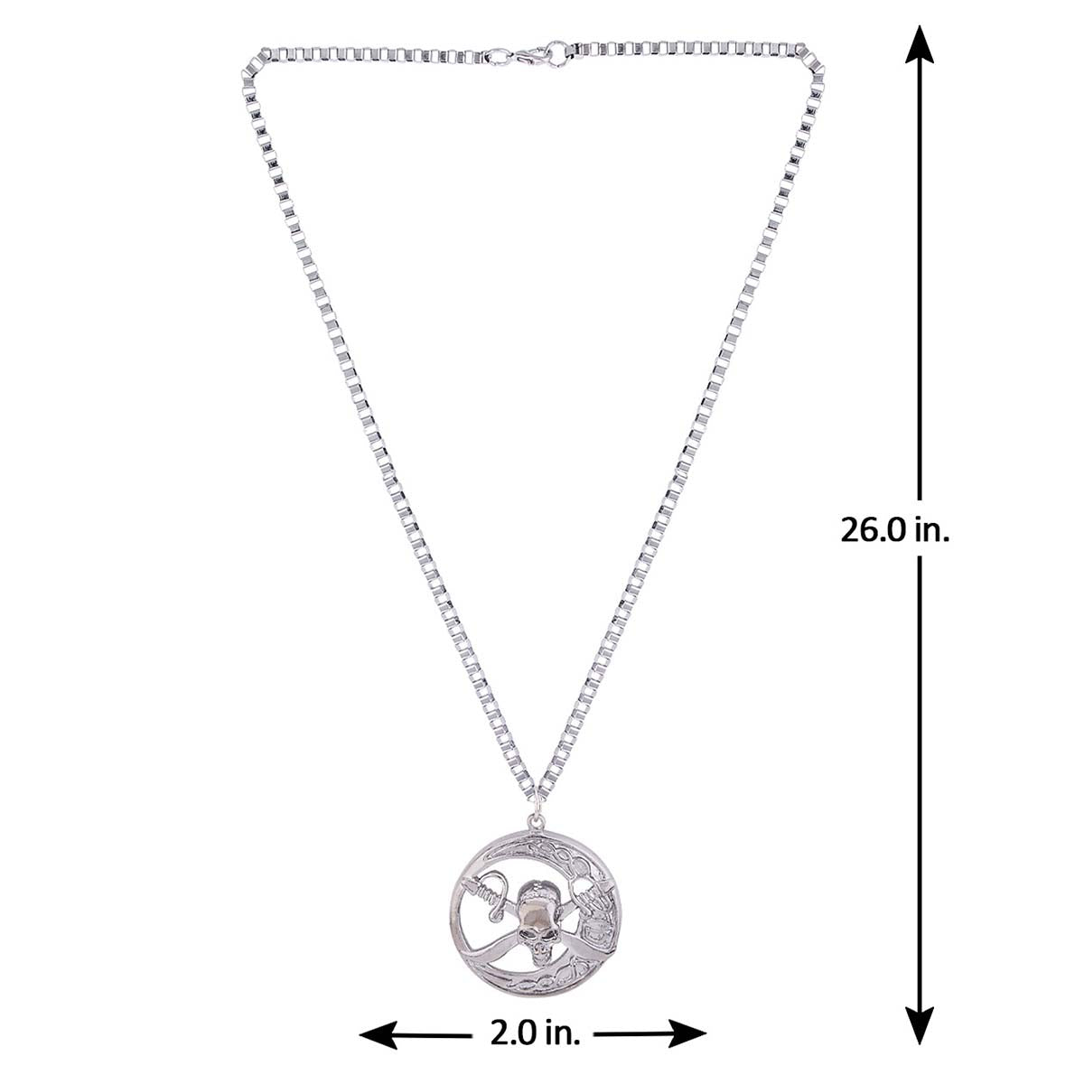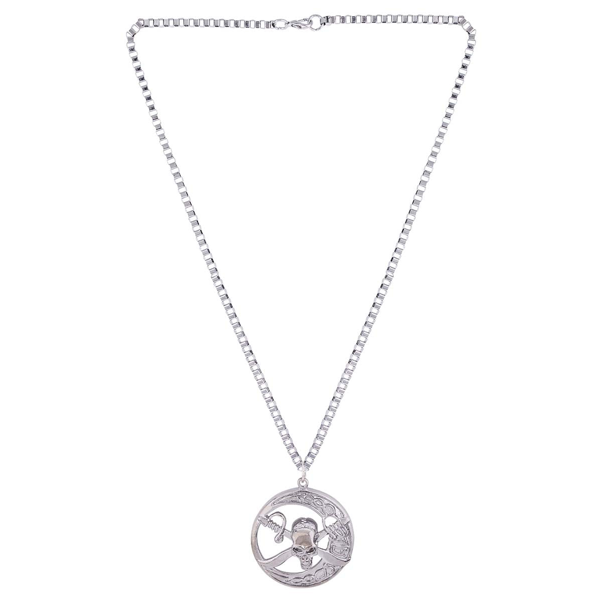 Round pendant set made from stainless steel. Silver plated. Good for casual looks. To make your accessories last longer avoid harsh chemicals and moisture. Keep dry, clean with dry cloth and wear with panache. "India?s largest fashion jewelry brand DARE, comes from the House of Voylla as a limited edition of handcrafted accessories for the modern Indian men. "