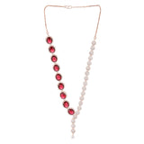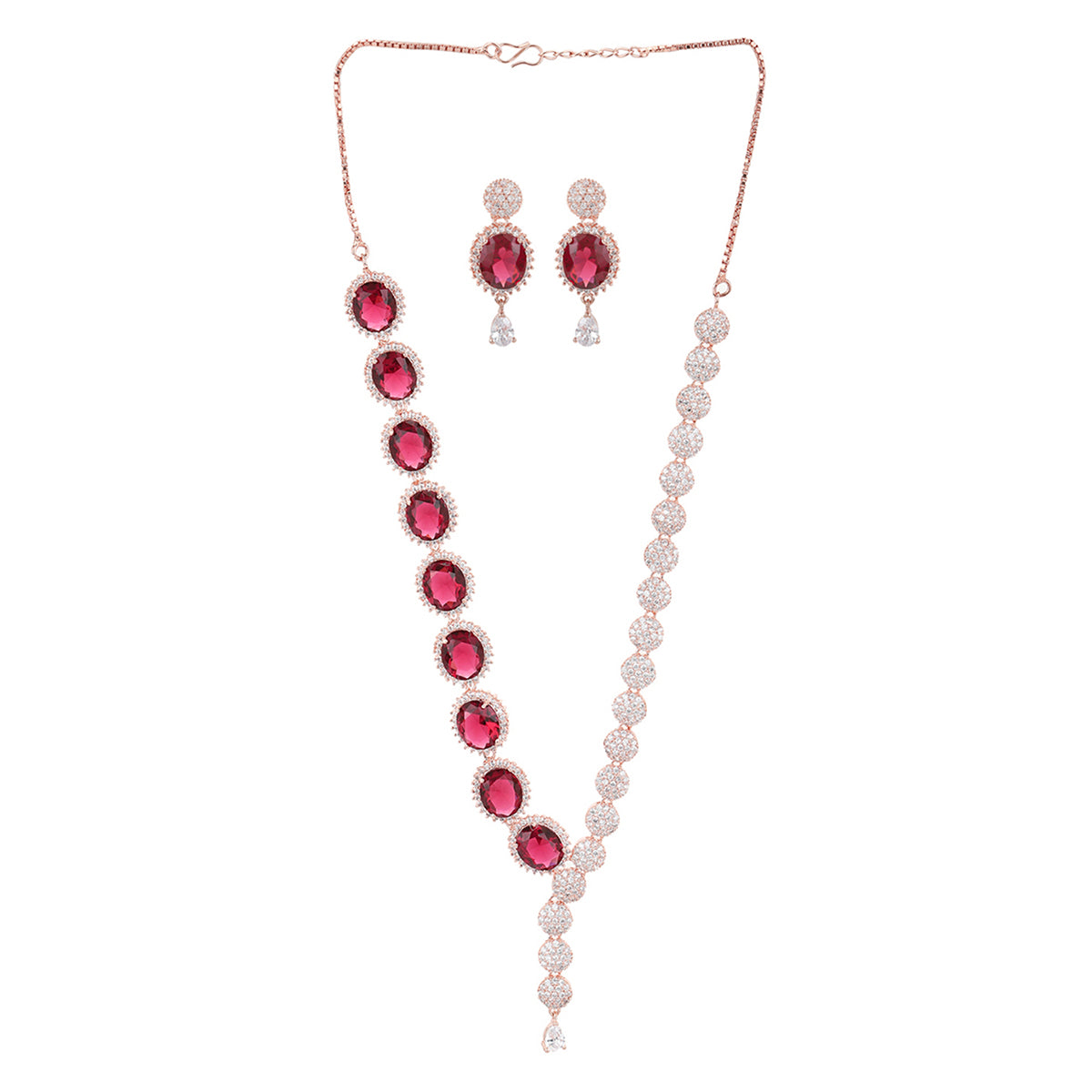 The oval red stones with maroon shade gives royal look. The combination of two different designs makes it more classy. Rose gold gives copper shine to the necklace.