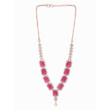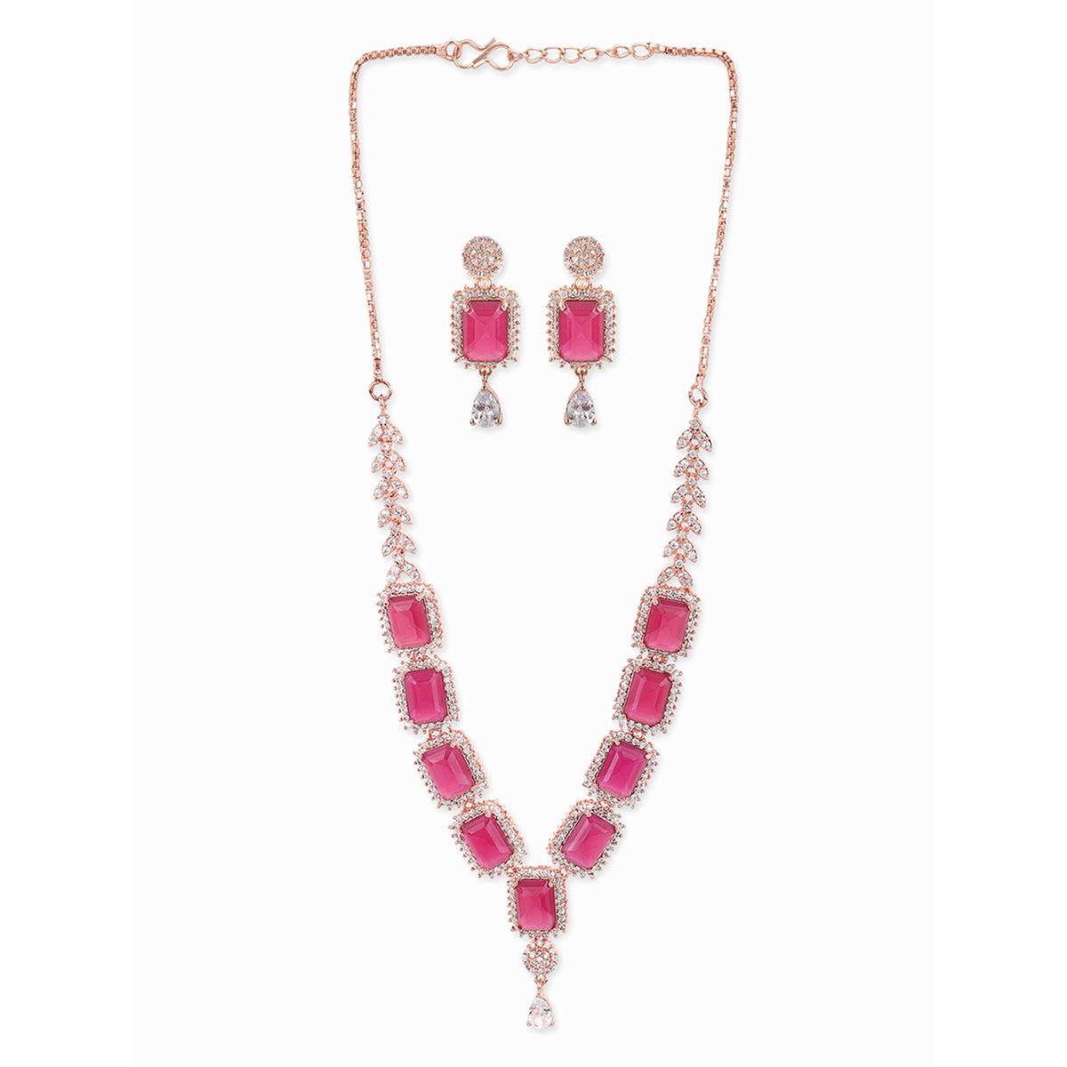 CZ Rose Gold Plated Necklace Set with Blue Stones