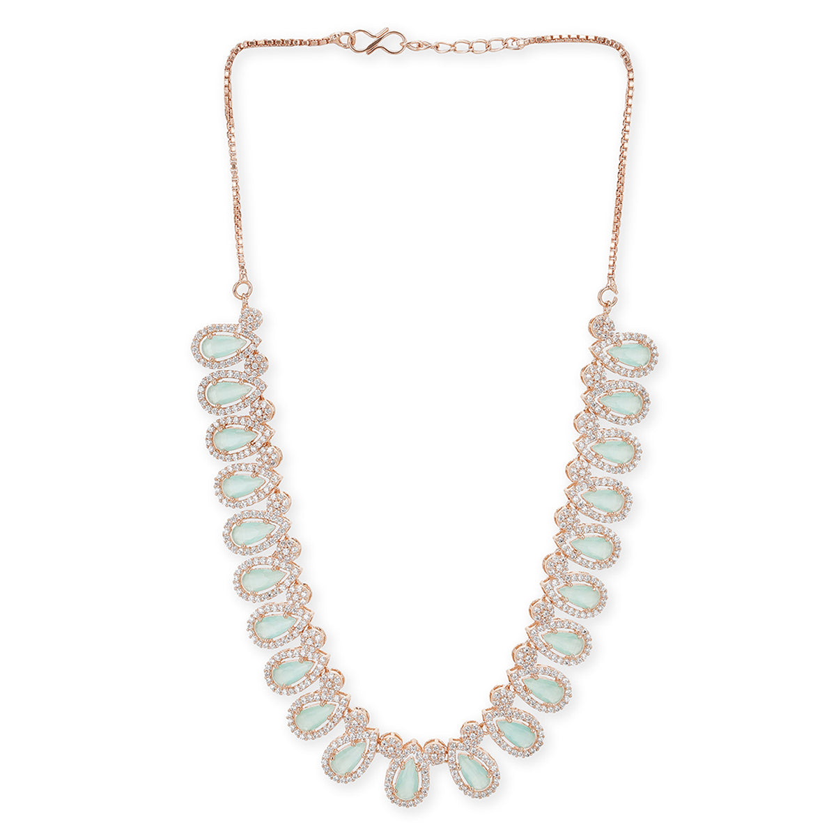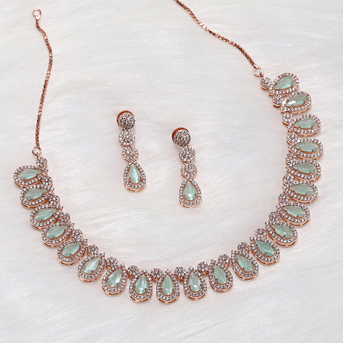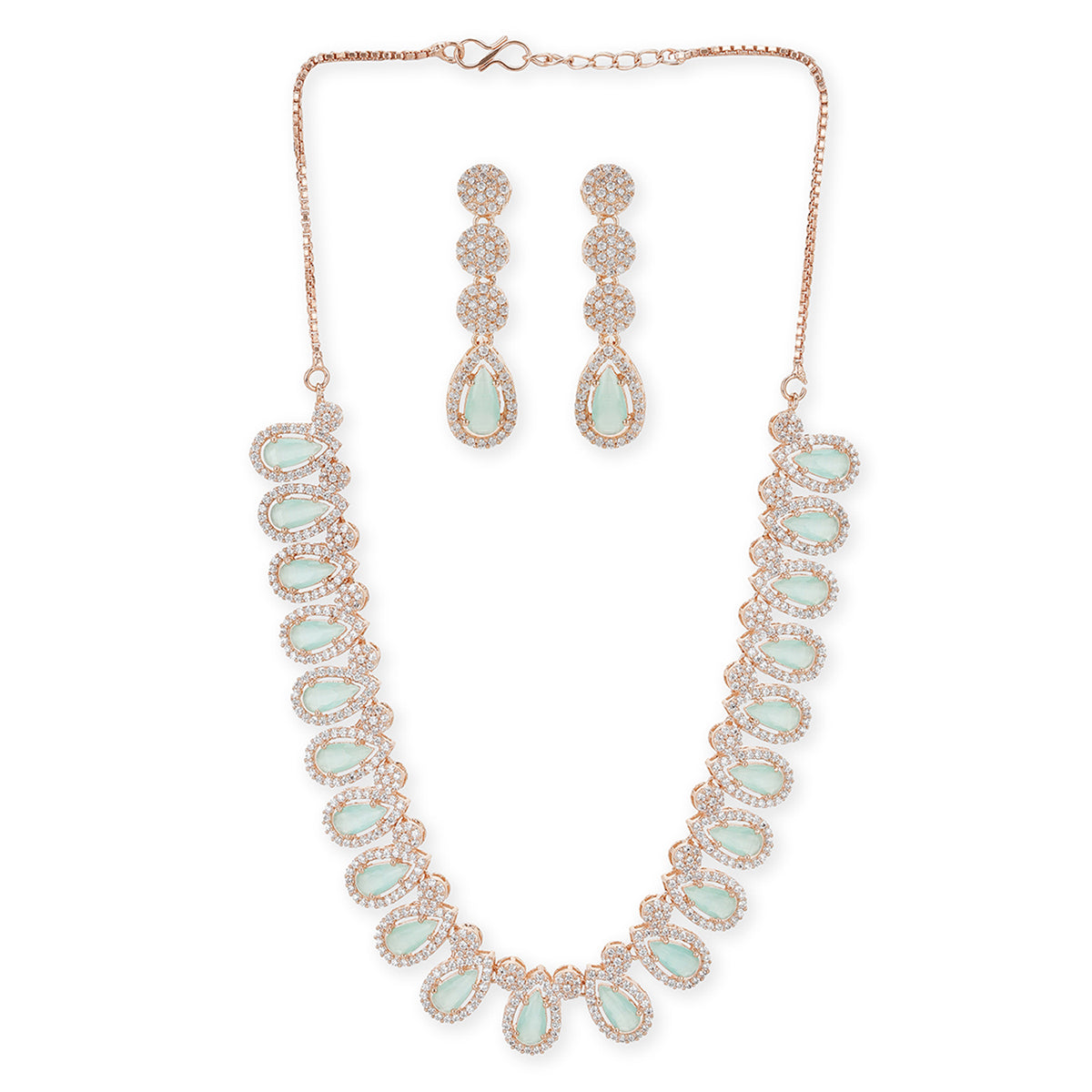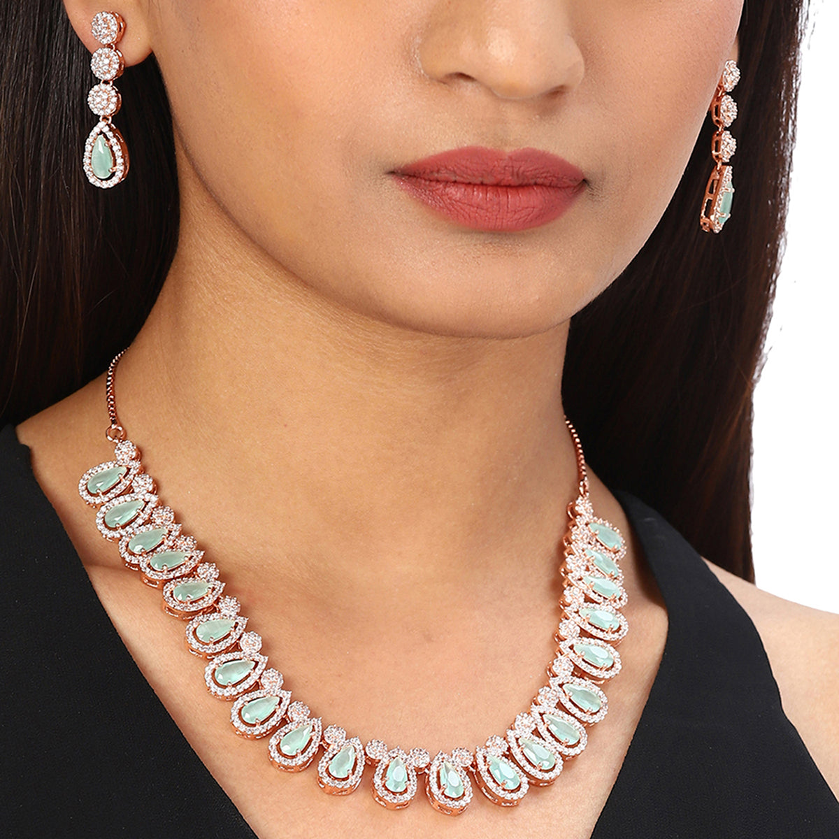 Rose Gold Brass necklace set, the outer finish is simply amazing. The gold covered set gives one of the most attractive looks to the wearer. The spirit of the wearer is shown through the color rose gold.