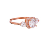 Rose Gold Emerald and Round Cut Zircons Adorned Brass Ring