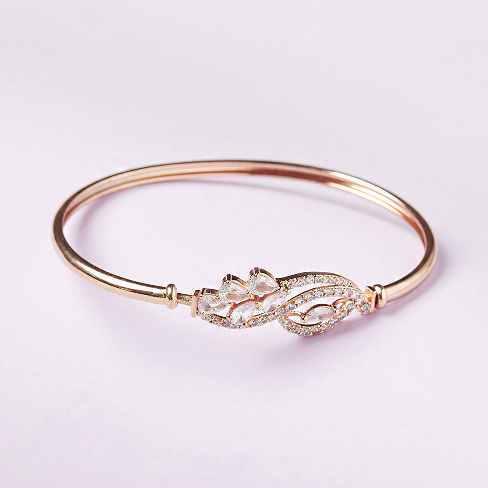 Brass rose gold plated women's bracelet with zircon gemstones. Good for formal looks.