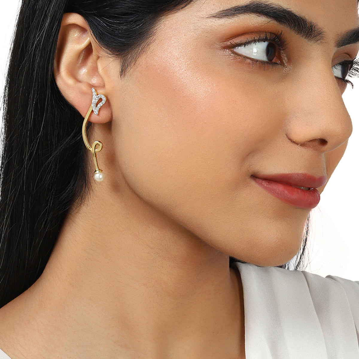 Designed to resemble music notes, these rose gold earring piece is something of a marvel in itself. This gold plated brass earring set with pearl like silver droplets is perfect to be part of anything western. Pair this with a LBD or a black flowy gown and make a fashion statement everyone is bound to remember!