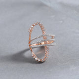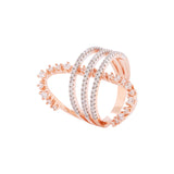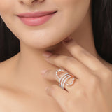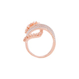 Rose gold plated designer inspired ring, made from brass and embellished with zircon gemstones. Good for everyday wear.