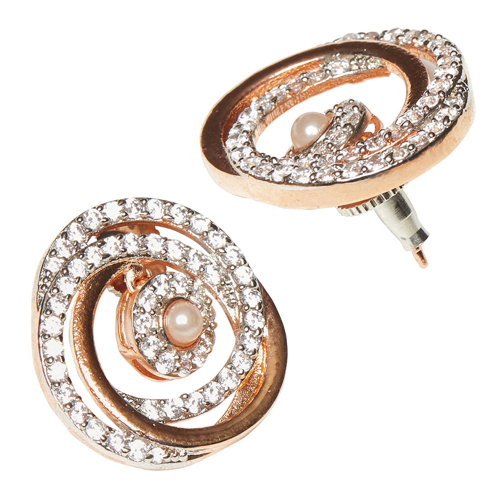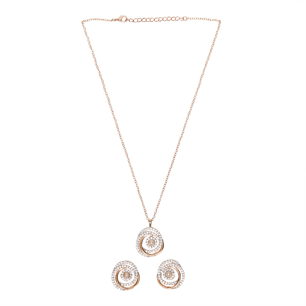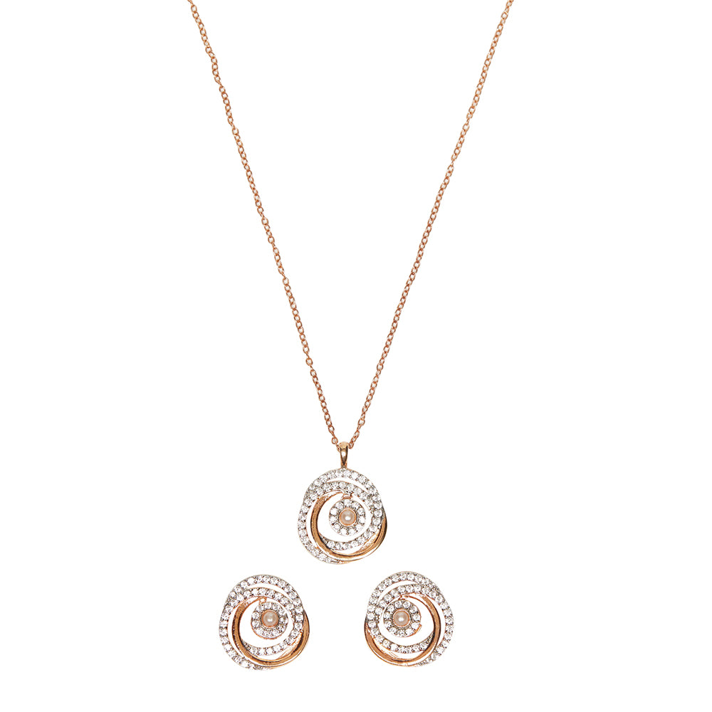 Rose Gold Plated Faux Pearls and CZ Brass Pendant Set