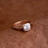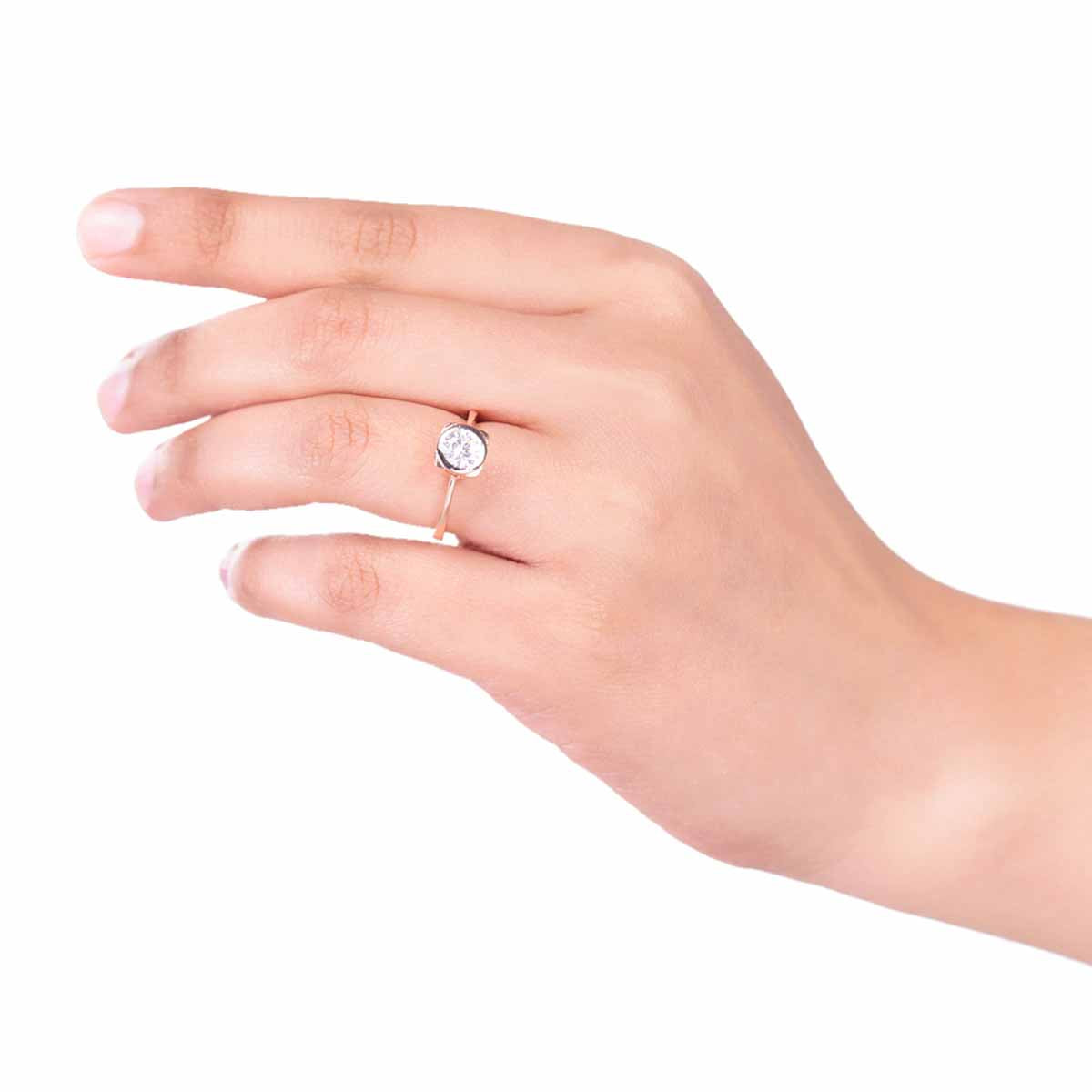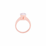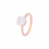 Brass ring for women, embellished with a single, round cut zircon gemstone. Rose gold plated and good for casual and formal wear.