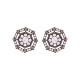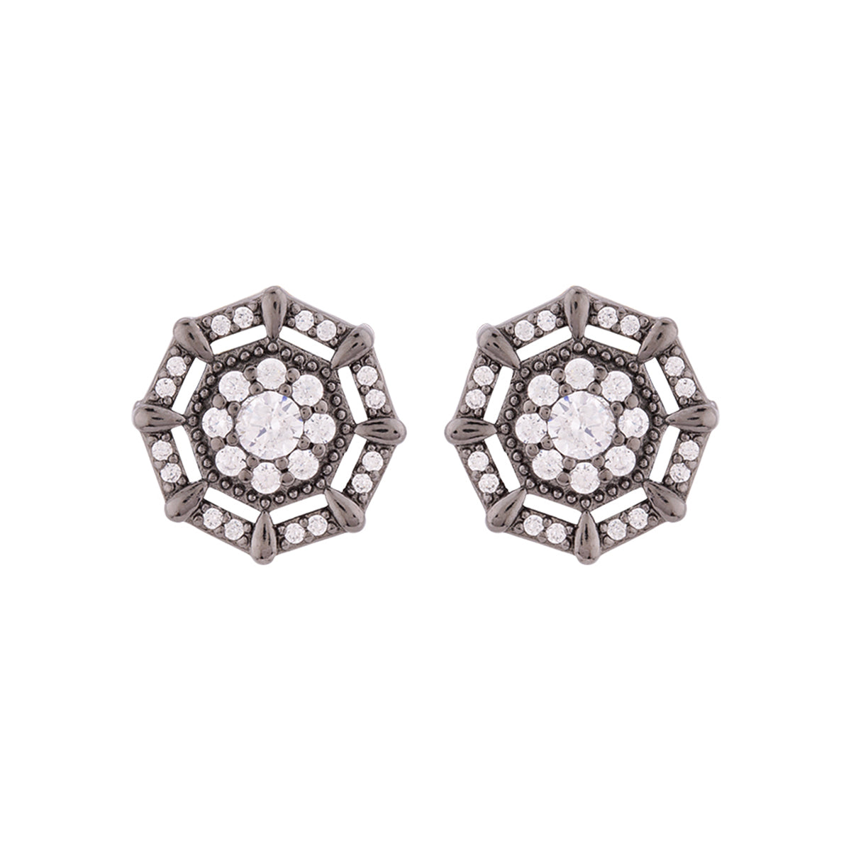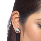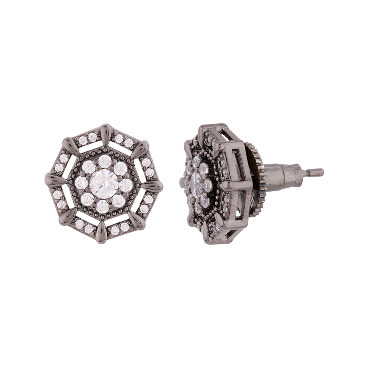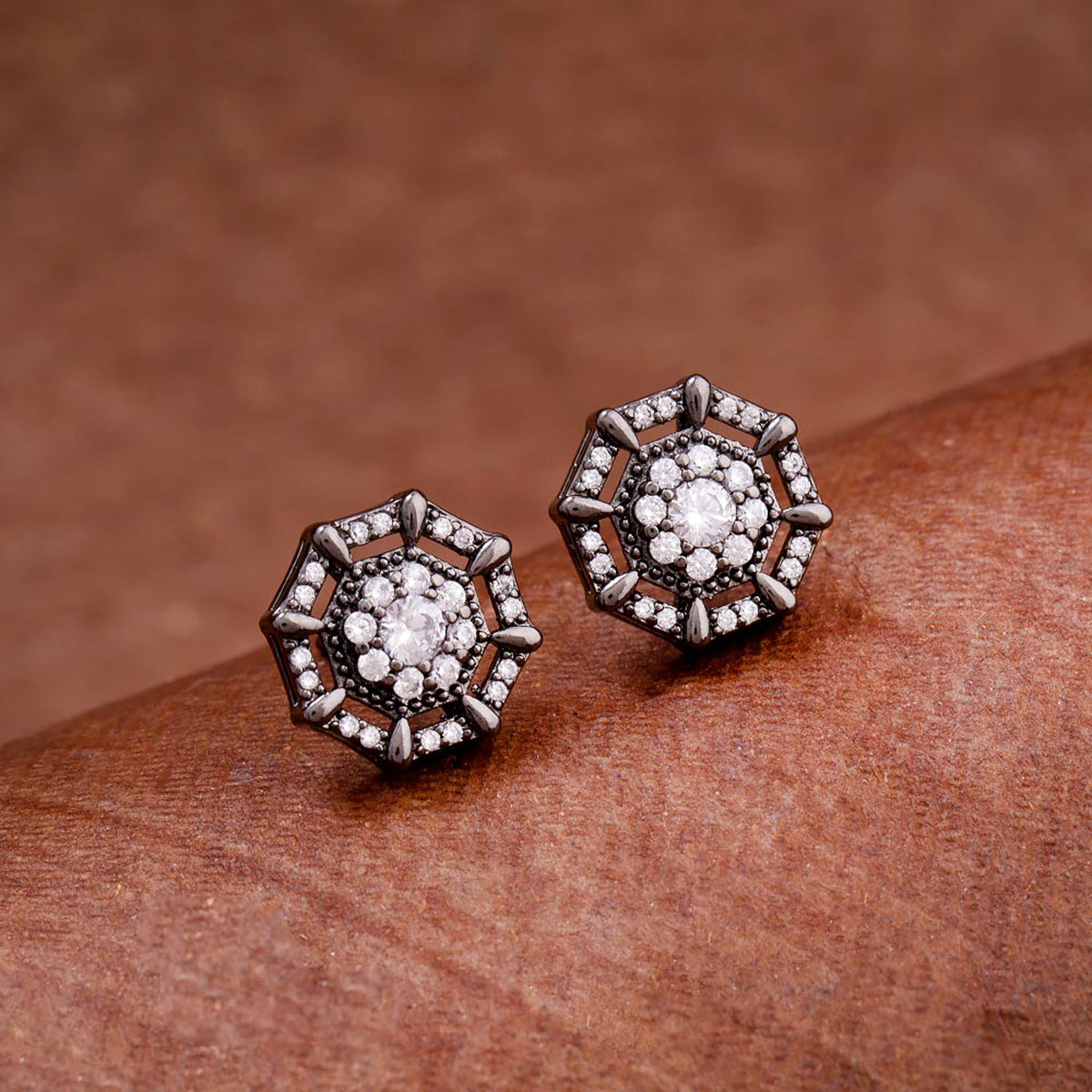 Stud earrings made from brass and oxidised silver plating. American Diamond gems adorned and good for formal and casual wear. This piece of jewelry comes with the Voylla assurance of quality and durability.
