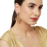 Gold plated drop earrings, fashioned out of quality brass. Embellished with faux kundan gems, the pair has been given an edgy yet traditional design. Pair the earrings with formal or casual outfits to add a touch of sparkle to the look.