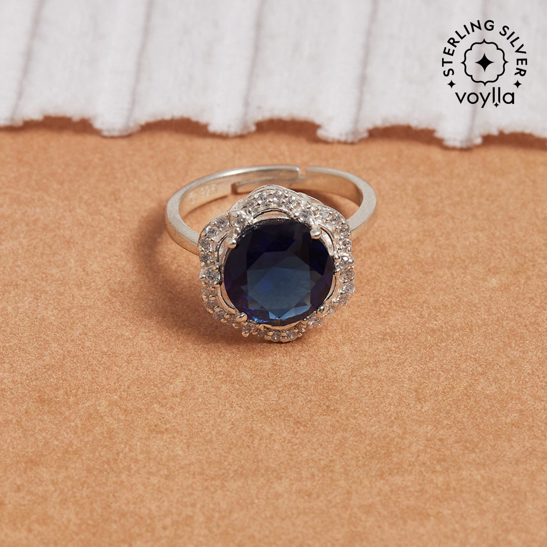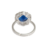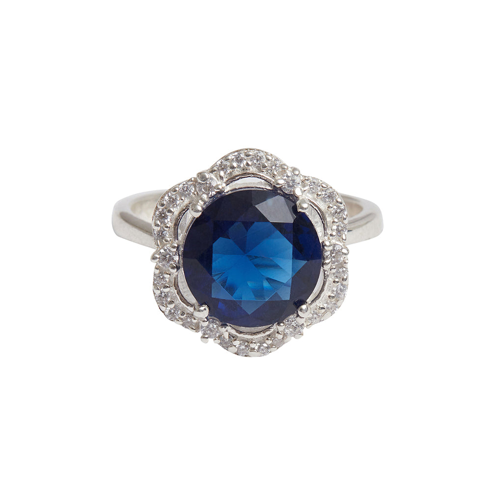 925 sterling silver women's ring, with a classic silver plating that adds to its charm. Featuring round cut Sapphire embellishment in a four-prong setting, the adjustable ring promises to be a comfortable wear at all times. Pair with just about anything.