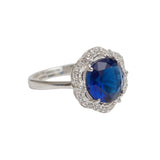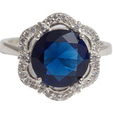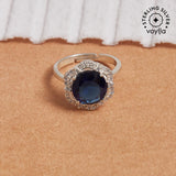 Round Cut Sapphire 925 Sterling Silver Silver Toned Ring